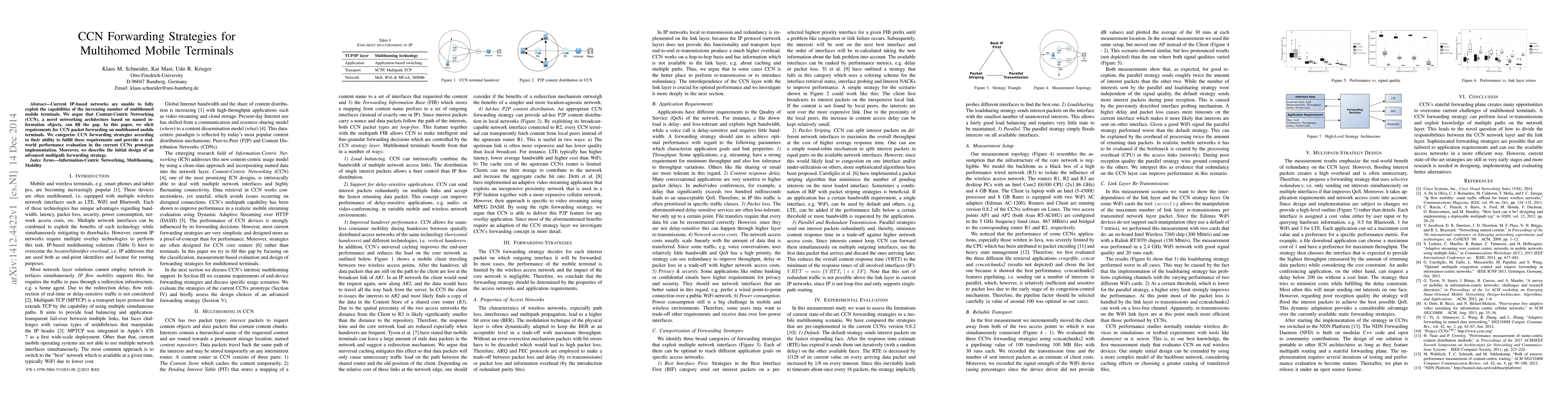 Current IP-based networks are unable to fully exploit the capabilities of the increasing number of multihomed mobile terminals. We argue that Content-Centric Networking (CCN), a novel networking architecture based on named information objects, can fill the gap. In this paper, we elicit requirements for CCN packet forwarding on multihomed mobile terminals. We categorize CCN forwarding strategies according to their ability to fulfill these requirements and provide a real-world performance evaluation in the current CCNx prototype implementation. Moreover, we describe the initial design of an advanced multipath forwarding strategy.