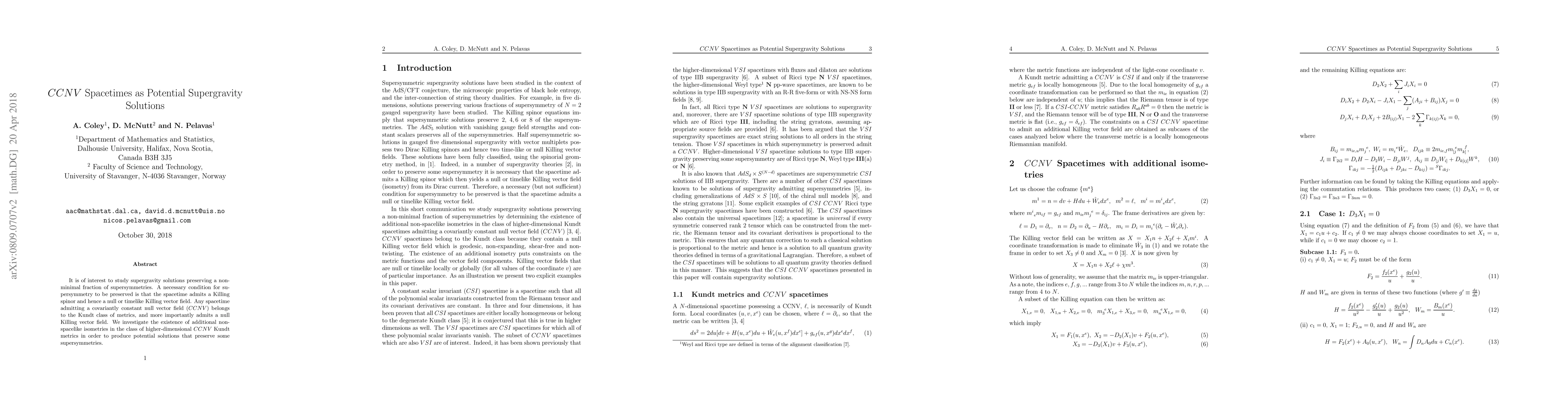 It is of interest to study supergravity solutions preserving a non-minimal fraction of supersymmetries. A necessary condition for supersymmetry to be preserved is that the spacetime admits a Killing spinor and hence a null or timelike Killing vector field. Any spacetime admitting a covariantly constant null vector field ($CCNV$) belongs to the Kundt class of metrics, and more importantly admits a null Killing vector field. We investigate the existence of additional non-spacelike isometries in the class of higher-dimensional $CCNV$ Kundt metrics in order to produce potential solutions that preserve some supersymmetries.