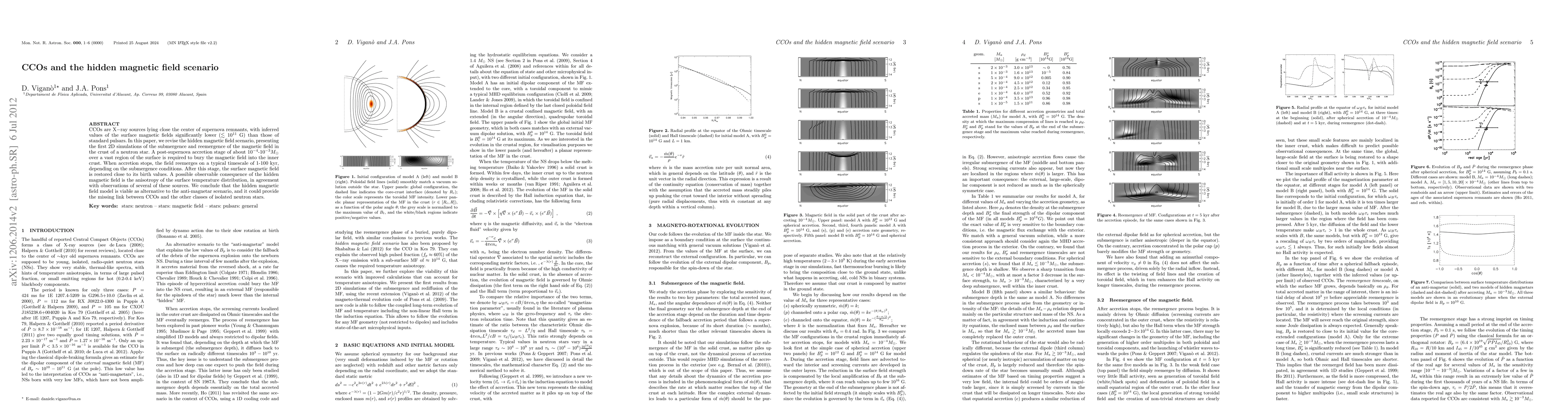 This paper revises the hidden magnetic field scenario for CCOs by simulating the submergence and reemergence of magnetic fields in a neutron star's crust after a supernova explosion. The model suggests that magnetic fields can be buried in the inner crust during accretion stages, only to reemerge later with observable consequences.