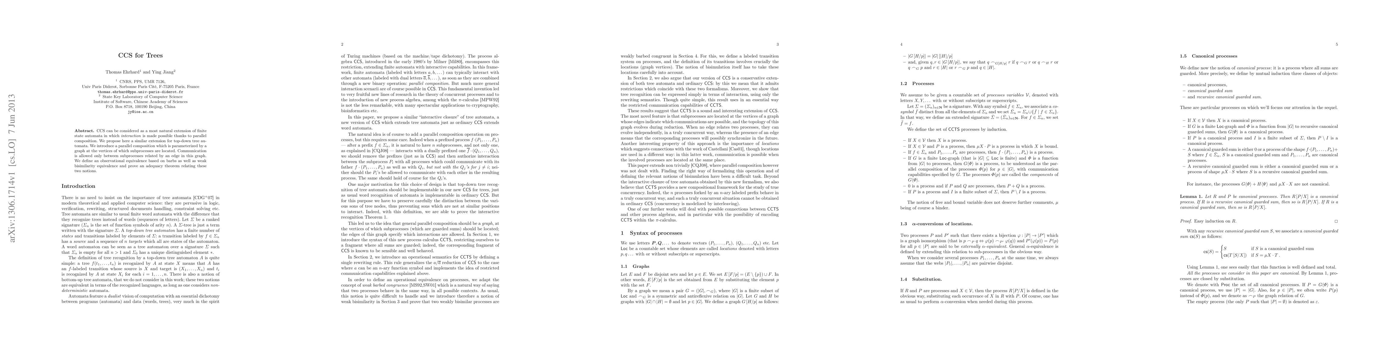 CCS can be considered as a most natural extension of finite state automata in which interaction is made possible thanks to parallel composition. We propose here a similar extension for top-down tree automata. We introduce a parallel composition which is parameterized by a graph at the vertices of which subprocesses are located. Communication is allowed only between subprocesses related by an edge in this graph. We define an observational equivalence based on barbs as well as weak bisimilarity equivalence and prove an adequacy theorem relating these two notions.