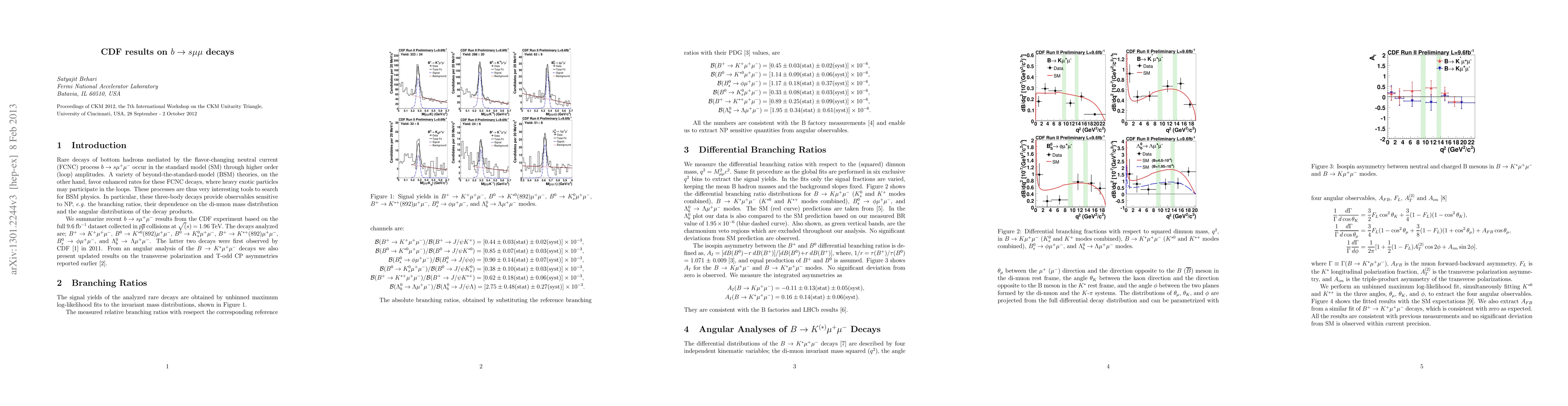 This paper summarizes recent results from the CDF experiment on b -> s mu mu decays using a full dataset of 9.6 fb^-1 at sqrt(s) = 1.96 TeV, including observations of several decay modes and updated angular analysis results on B -> K* mu+ mu- decays. The CDF experiment reports the first observation of Lambda0_b -> Lambda mu+ mu- and updates on transverse polarization and T-odd CP asymmetries.