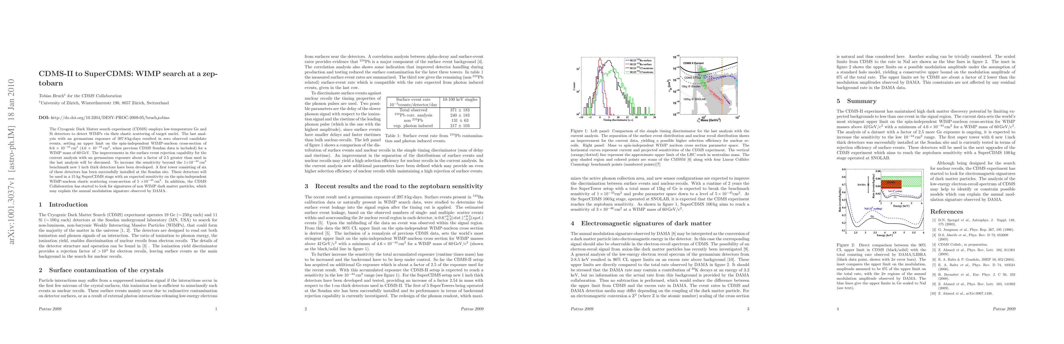 The CDMS-II experiment uses cryogenic Ge and Si detectors to search for WIMP dark matter, setting a stringent upper limit on the WIMP-nucleon cross-section. The SuperCDMS upgrade aims to reach a sensitivity of 5 x 10^{-45} cm^2, with new 1 inch thick detectors, and also explores non-WIMP dark matter candidates.