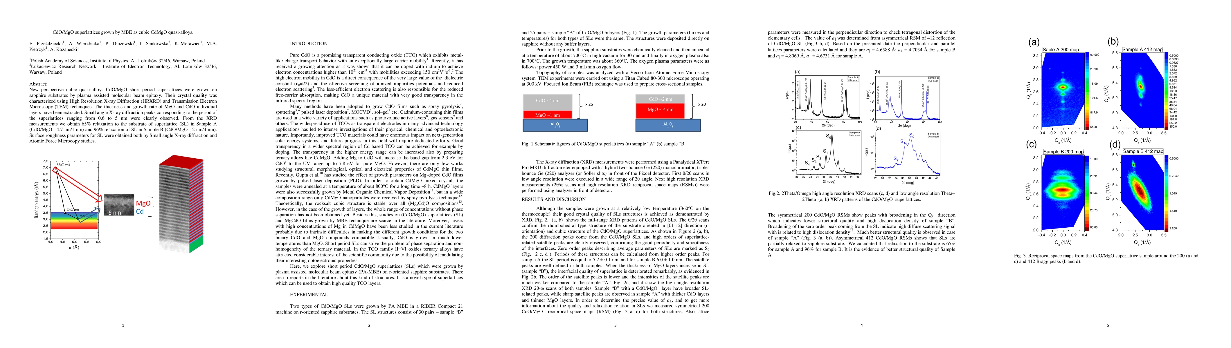 This study details the growth of cubic CdO/MgO superlattices via plasma-assisted molecular beam epitaxy, revealing high-quality crystal structures through HRXRD and TEM. The research highlights the relaxation percentages and surface roughness of the superlattices, indicating significant structural insights into these quasi-alloys.