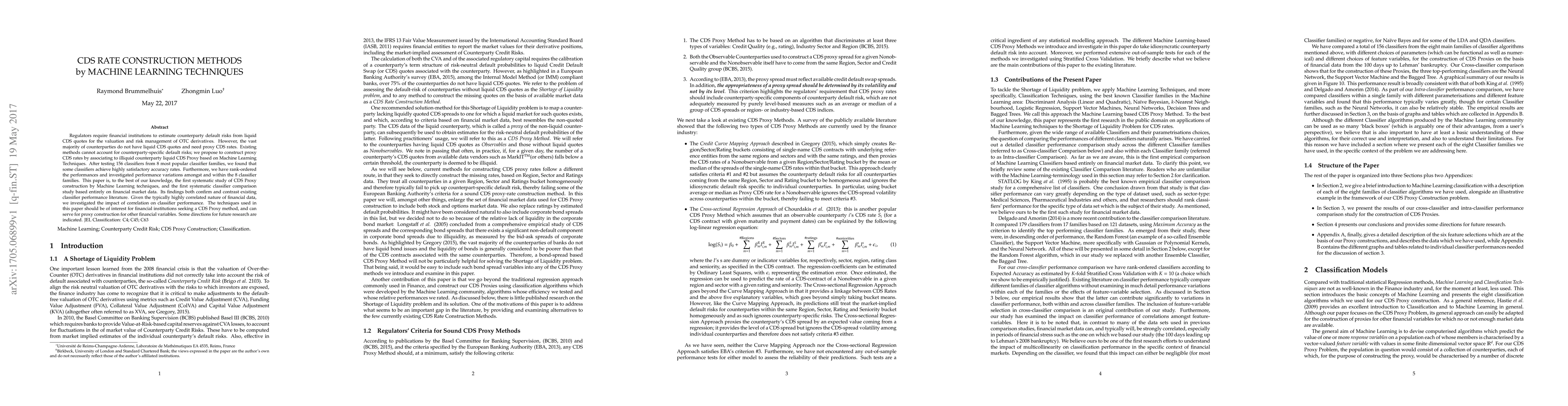 Regulators require financial institutions to estimate counterparty default risks from liquid CDS quotes for the valuation and risk management of OTC derivatives. However, the vast majority of counterparties do not have liquid CDS quotes and need proxy CDS rates. Existing methods cannot account for counterparty-specific default risks; we propose to construct proxy CDS rates by associating to illiquid counterparty liquid CDS Proxy based on Machine Learning Techniques. After testing 156 classifiers from 8 most popular classifier families, we found that some classifiers achieve highly satisfactory accuracy rates. Furthermore, we have rank-ordered the performances and investigated performance variations amongst and within the 8 classifier families. This paper is, to the best of our knowledge, the first systematic study of CDS Proxy construction by Machine Learning techniques, and the first systematic classifier comparison study based entirely on financial market data. Its findings both confirm and contrast existing classifier performance literature. Given the typically highly correlated nature of financial data, we investigated the impact of correlation on classifier performance. The techniques used in this paper should be of interest for financial institutions seeking a CDS Proxy method, and can serve for proxy construction for other financial variables. Some directions for future research are indicated.