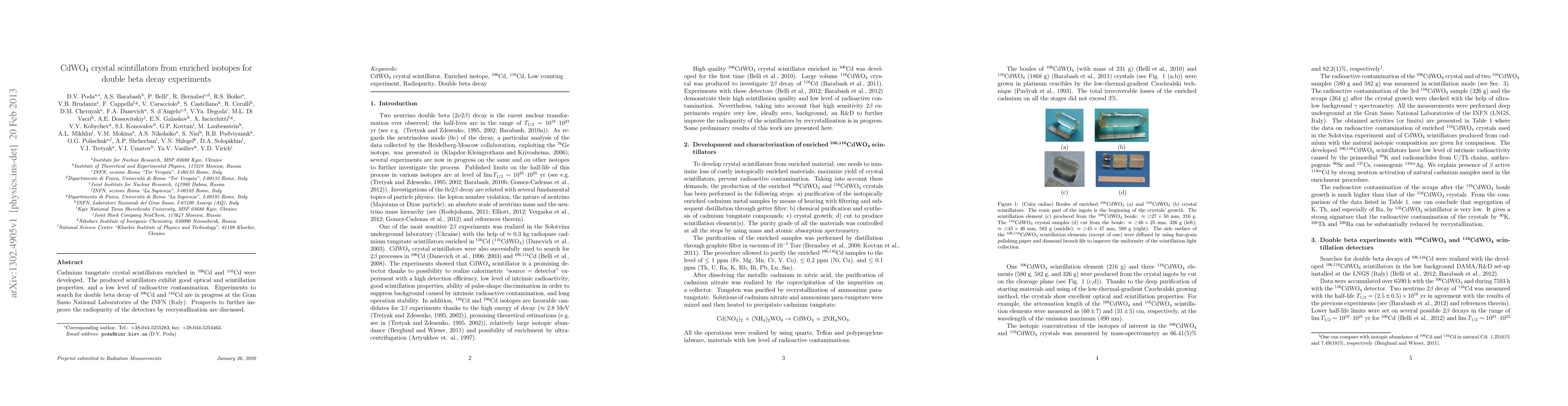 This paper details the development of CdWO4 crystal scintillators enriched in 106Cd and 116Cd, showcasing favorable optical and scintillation properties along with minimal radioactive contamination. The scintillators are being utilized in double beta decay experiments at Gran Sasso National Laboratories, with discussions on potential enhancements through recrystallization.