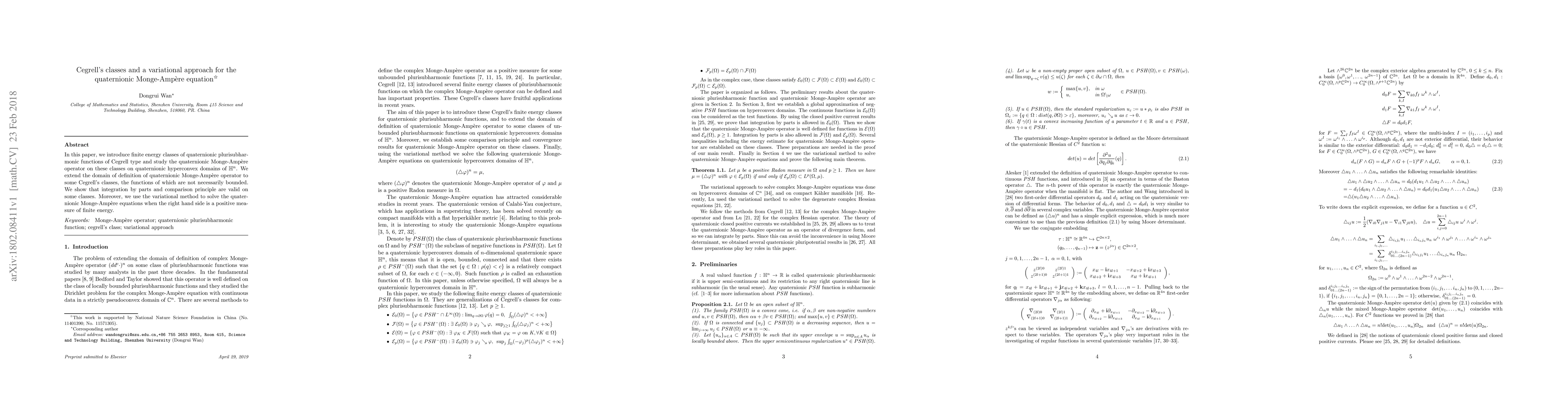 This paper explores finite energy classes of quaternionic plurisubharmonic functions of Cegrell type and extends the quaternionic Monge-Ampere operator's domain to include unbounded functions. The authors demonstrate the validity of integration by parts and the comparison principle, and solve the quaternionic Monge-Ampere equation using a variational approach for positive measures of finite energy.