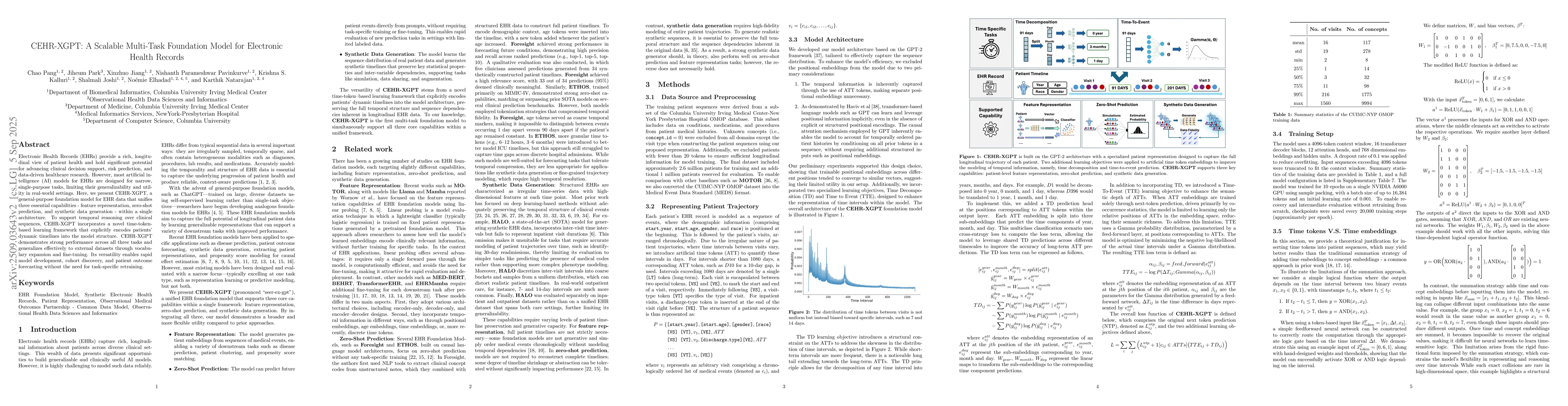 Electronic Health Records (EHRs) provide a rich, longitudinal view of patient health and hold significant potential for advancing clinical decision support, risk prediction, and data-driven healthcare research. However, most artificial intelligence (AI) models for EHRs are designed for narrow, single-purpose tasks, limiting their generalizability and utility in real-world settings. Here, we present CEHR-XGPT, a general-purpose foundation model for EHR data that unifies three essential capabilities - feature representation, zero-shot prediction, and synthetic data generation - within a single architecture. To support temporal reasoning over clinical sequences, CEHR-XGPT incorporates a novel time-token-based learning framework that explicitly encodes patients' dynamic timelines into the model structure. CEHR-XGPT demonstrates strong performance across all three tasks and generalizes effectively to external datasets through vocabulary expansion and fine-tuning. Its versatility enables rapid model development, cohort discovery, and patient outcome forecasting without the need for task-specific retraining.