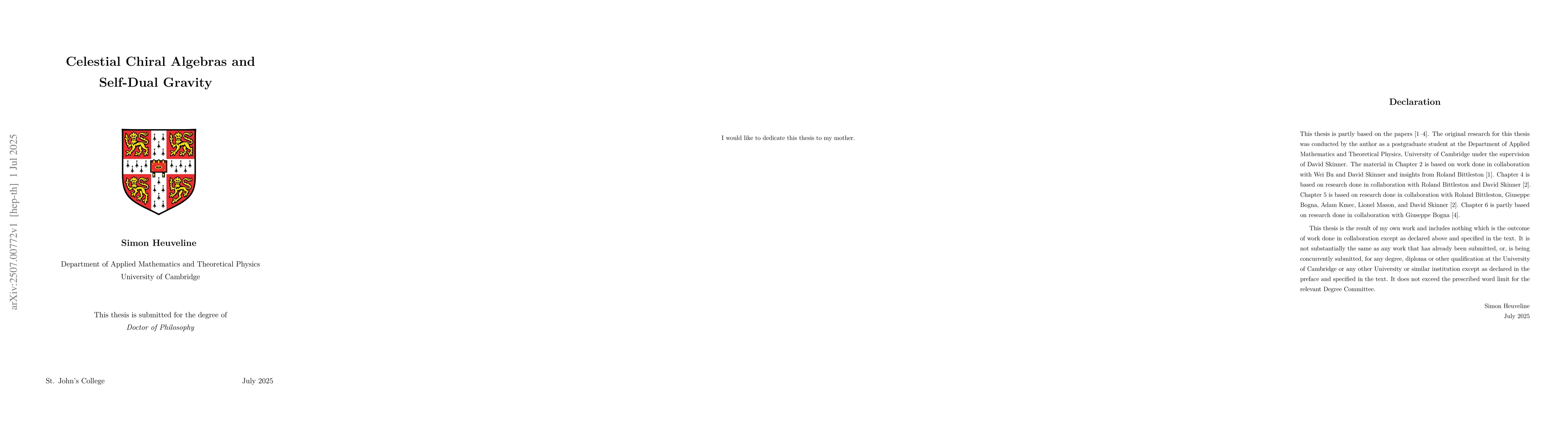 Celestial holography suggests, among other things, that collinear singularities of graviton scattering amplitudes are described by the OPEs of some putative dual CFT. One of the great successes has been the insight that this duality is true at tree-level which led to the discovery of new infinite dimensional symmetry algebras of tree-level amplitudes in flat space closely related to w$_{1+\infty}$. This thesis studies these celestial chiral algebras in the light of twistor theory and derives tree-level deformations thereof induced by non-trivial background geometries that solve some form of the self-dual Einstein equations.