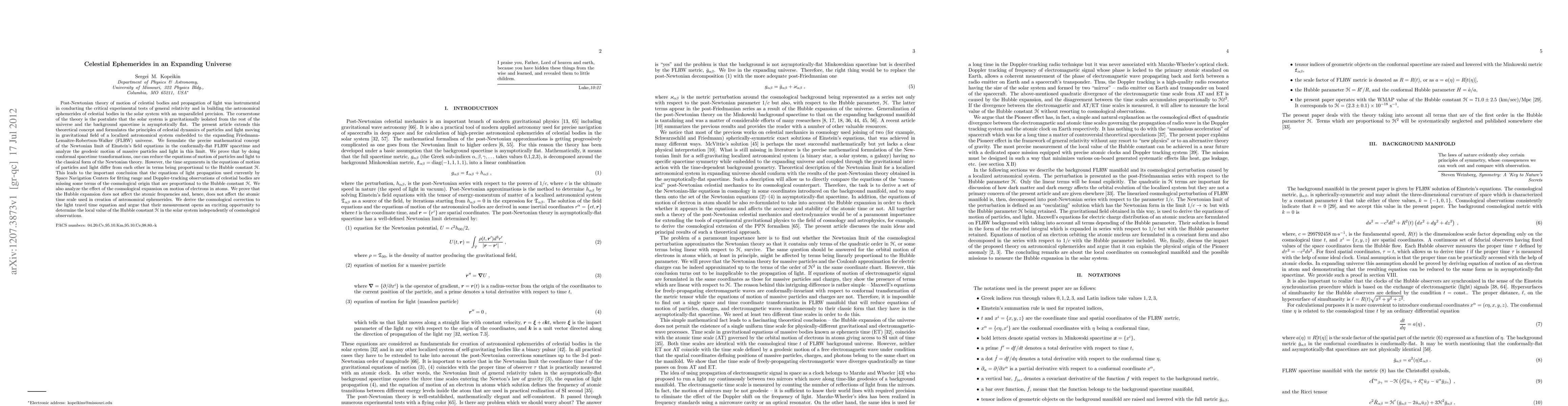This paper extends post-Newtonian theory to celestial dynamics in an expanding universe, showing that conformal transformations can reduce equations of motion to classical Newtonian forms. It highlights discrepancies in current light propagation equations due to the Hubble constant, H, and proposes a method to determine the local value of H using these corrections.