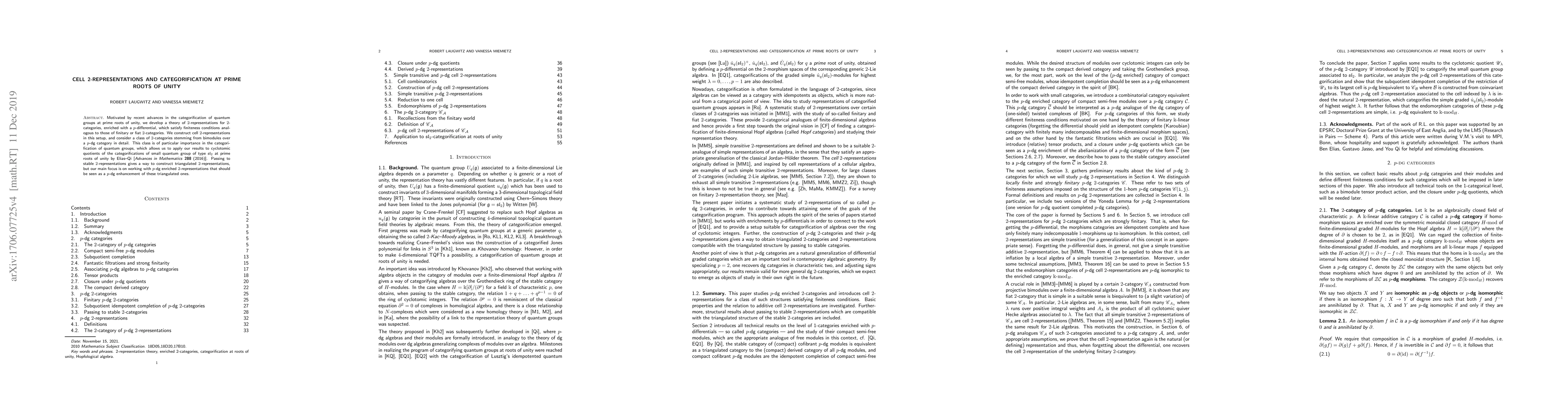 This paper develops a theory of 2-representations for enriched 2-categories at prime roots of unity, constructing cell 2-representations and focusing on their application to categorifying quantum groups. It highlights the importance of p-differential structures and their role in enhancing triangulated 2-representations.