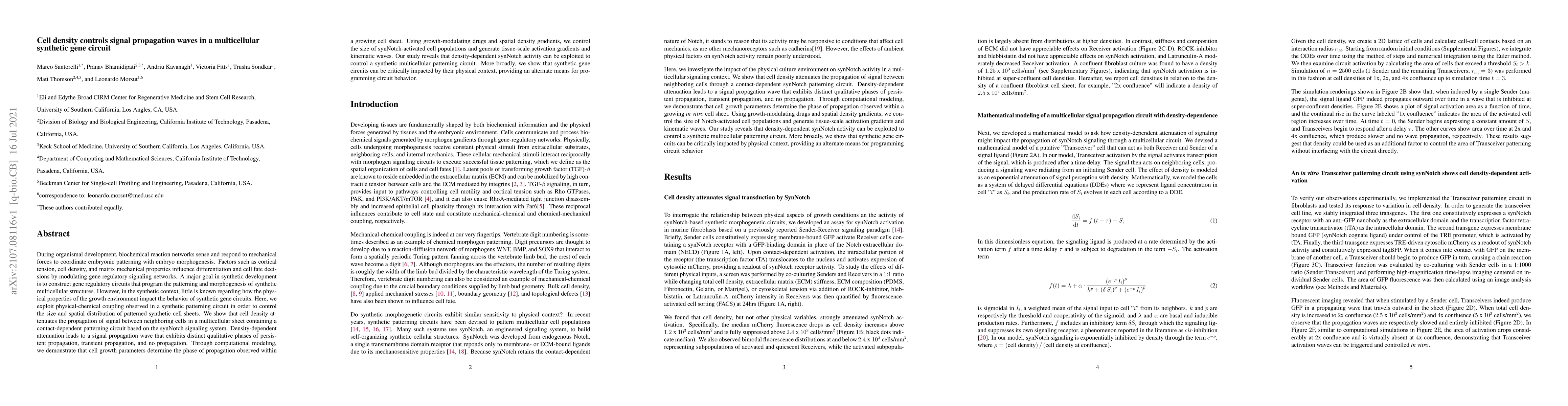 This study demonstrates that cell density influences signal propagation in a synthetic gene circuit, leading to distinct phases of signal propagation in a multicellular sheet. By manipulating cell density, researchers control the size and spatial distribution of patterned synthetic cell sheets, revealing the impact of physical context on synthetic gene circuits.