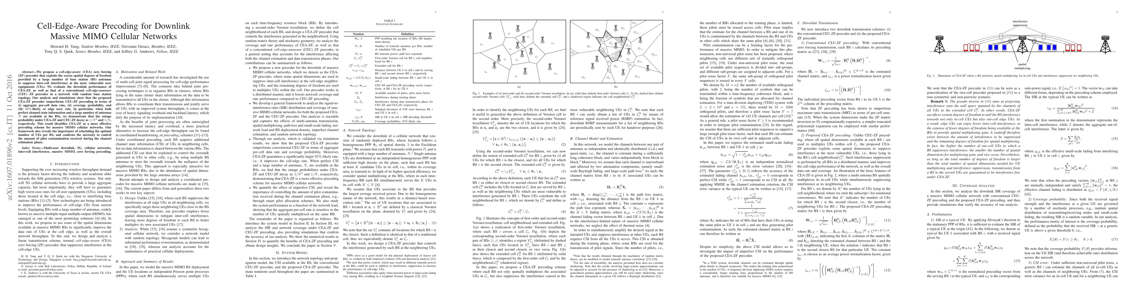 A new precoding scheme, cell-edge-aware ZF precoding, outperforms conventional cell-edge-unaware ZF precoding in terms of data rate and coverage probability for massive MIMO cellular networks.