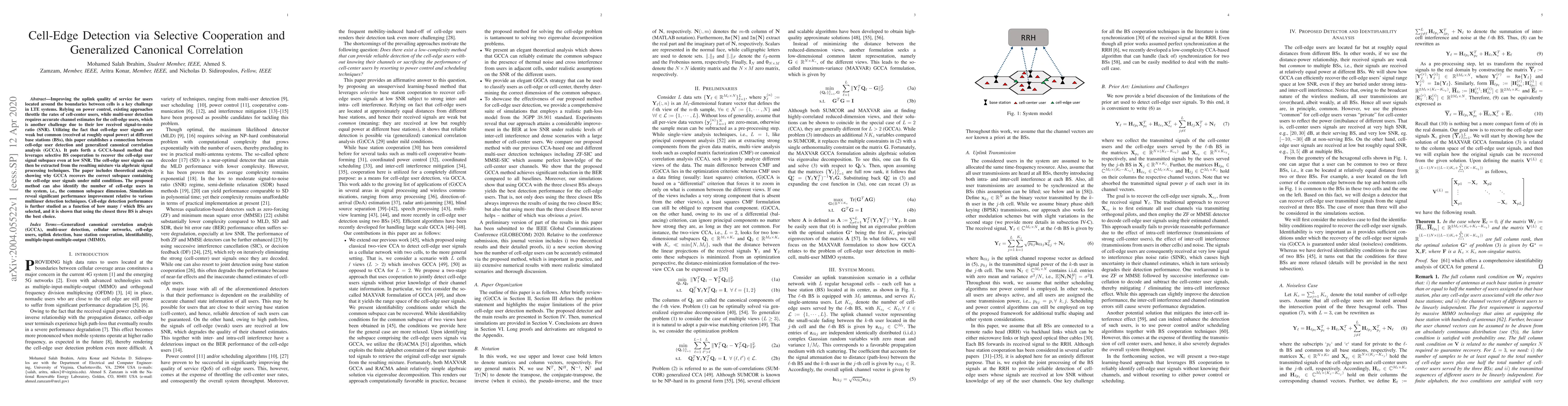 This paper proposes a GCCA-based method for cell-edge user detection in LTE systems, leveraging selective base station cooperation to recover the weak but common signals of cell-edge users at low SNR. Simulations show significant performance improvements over existing multiuser detection techniques.