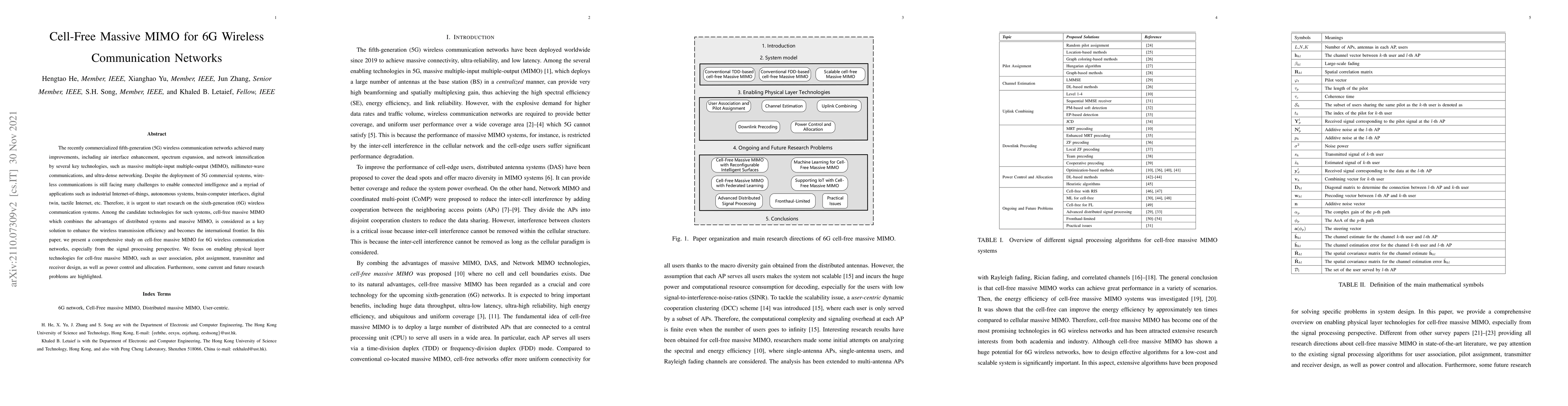 The recently commercialized fifth-generation (5G) wireless communication networks achieved many improvements, including air interface enhancement, spectrum expansion, and network intensification by several key technologies, such as massive multiple-input multiple-output (MIMO), millimeter-wave communications, and ultra-dense networking. Despite the deployment of 5G commercial systems, wireless communications is still facing many challenges to enable connected intelligence and a myriad of applications such as industrial Internet-of-things, autonomous systems, brain-computer interfaces, digital twin, tactile Internet, etc. Therefore, it is urgent to start research on the sixth-generation (6G) wireless communication systems. Among the candidate technologies for such systems, cell-free massive MIMO which combines the advantages of distributed systems and massive MIMO is considered as a key solution to enhance the wireless transmission efficiency and becomes the international frontier. In this paper, we present a comprehensive study on cell-free massive MIMO for 6G wireless communication networks, especially from the signal processing perspective. We focus on enabling physical layer technologies for cell-free massive MIMO, such as user association, pilot assignment, transmitter and receiver design, as well as power control and allocation. Furthermore, some current and future research problems are highlighted.