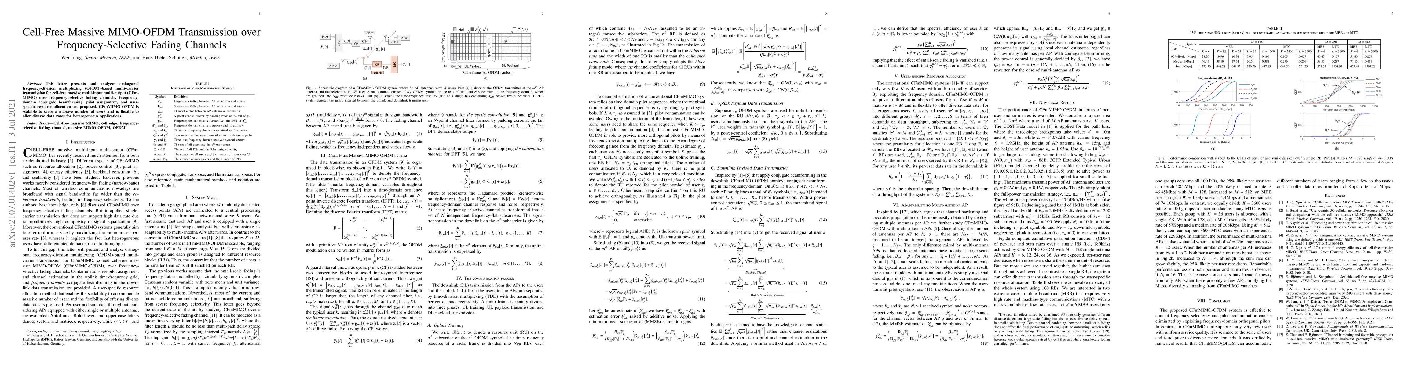 This paper explores OFDM-based multi-carrier transmission for cell-free massive MIMO over frequency-selective fading channels, proposing frequency-domain conjugate beamforming, pilot assignment, and user-specific resource allocation to enhance scalability and flexibility for diverse data rates.