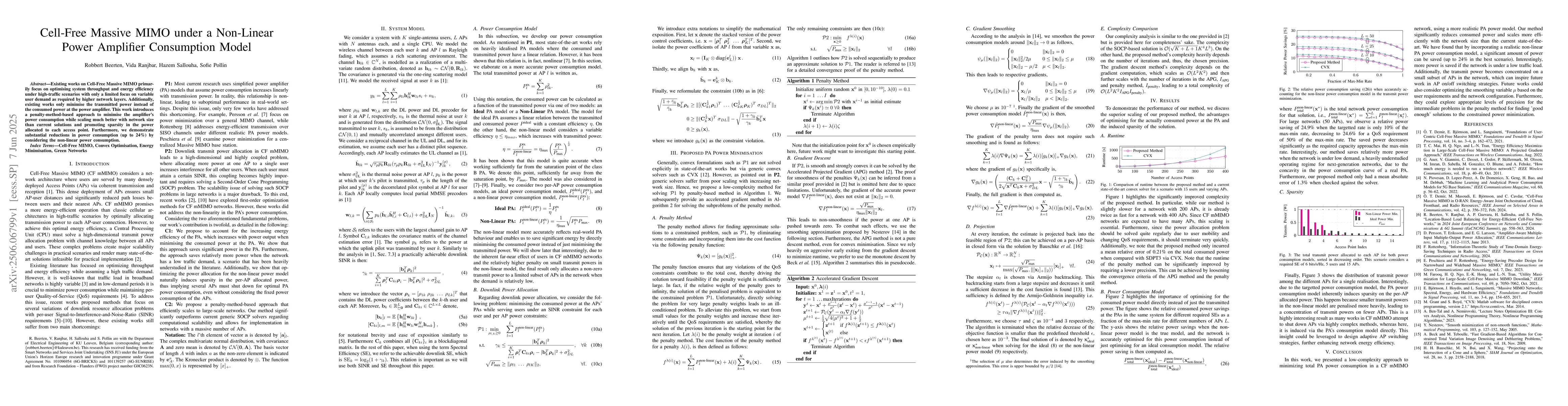 This paper proposes a method to minimize power amplifier consumption in Cell-Free Massive MIMO systems, achieving up to 24% reductions in power usage with non-linear consumption models.