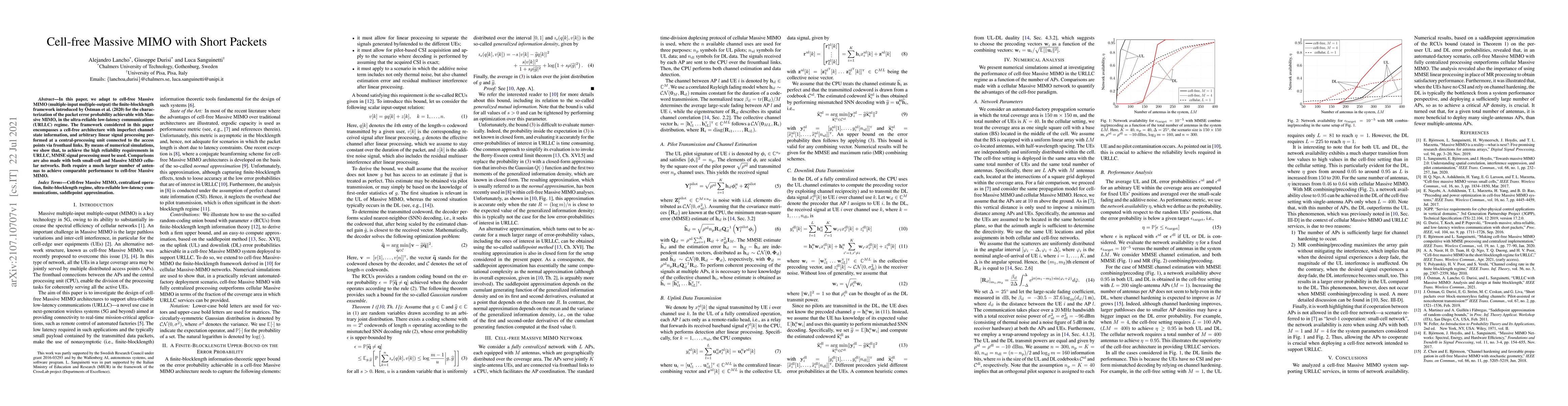 This paper adapts the finite-blocklength framework for cell-free Massive MIMO in the URLLC regime, demonstrating that MMSE signal processing is essential for high reliability. It shows that cell-free Massive MIMO requires fewer antennas compared to small-cell and cellular Massive MIMO to achieve similar performance.