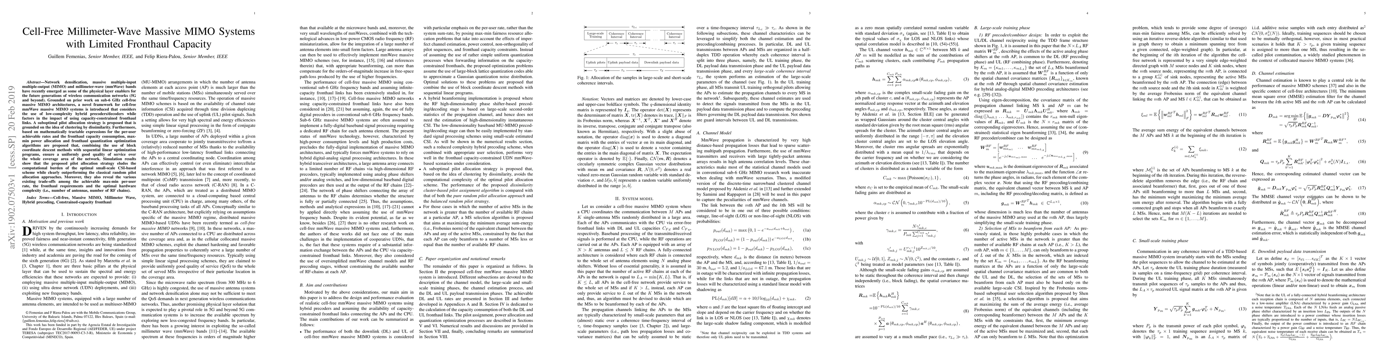 This paper introduces a novel framework for cell-free millimeter-wave massive MIMO systems, addressing the challenges of limited fronthaul capacity. The proposed suboptimal pilot allocation strategy, based on clustering, outperforms random allocation while reducing computational burden, and optimization algorithms ensure good service quality across the network.