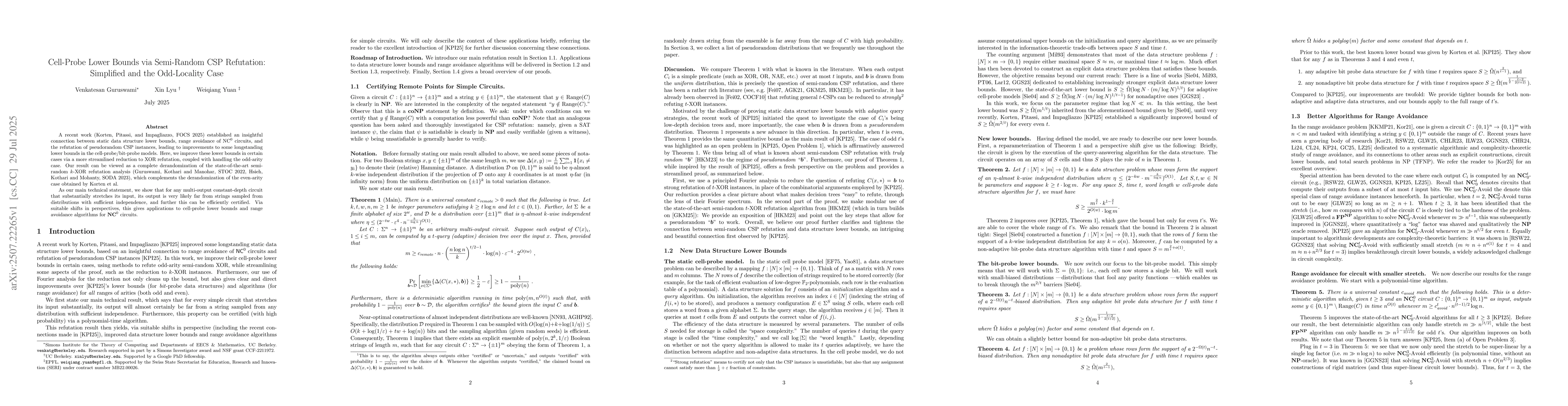 A recent work (Korten, Pitassi, and Impagliazzo, FOCS 2025) established an insightful connection between static data structure lower bounds, range avoidance of $\text{NC}^0$ circuits, and the refutation of pseudorandom CSP instances, leading to improvements to some longstanding lower bounds in the cell-probe/bit-probe models. Here, we improve these lower bounds in certain cases via a more streamlined reduction to XOR refutation, coupled with handling the odd-arity case. Our result can be viewed as a complete derandomization of the state-of-the-art semi-random $k$-XOR refutation analysis (Guruswami, Kothari and Manohar, STOC 2022, Hsieh, Kothari and Mohanty, SODA 2023), which complements the derandomization of the even-arity case obtained by Korten et al. As our main technical statement, we show that for any multi-output constant-depth circuit that substantially stretches its input, its output is very likely far from strings sampled from distributions with sufficient independence, and further this can be efficiently certified. Via suitable shifts in perspectives, this gives applications to cell-probe lower bounds and range avoidance algorithms for $\mathsf{NC}^0$ circuits.