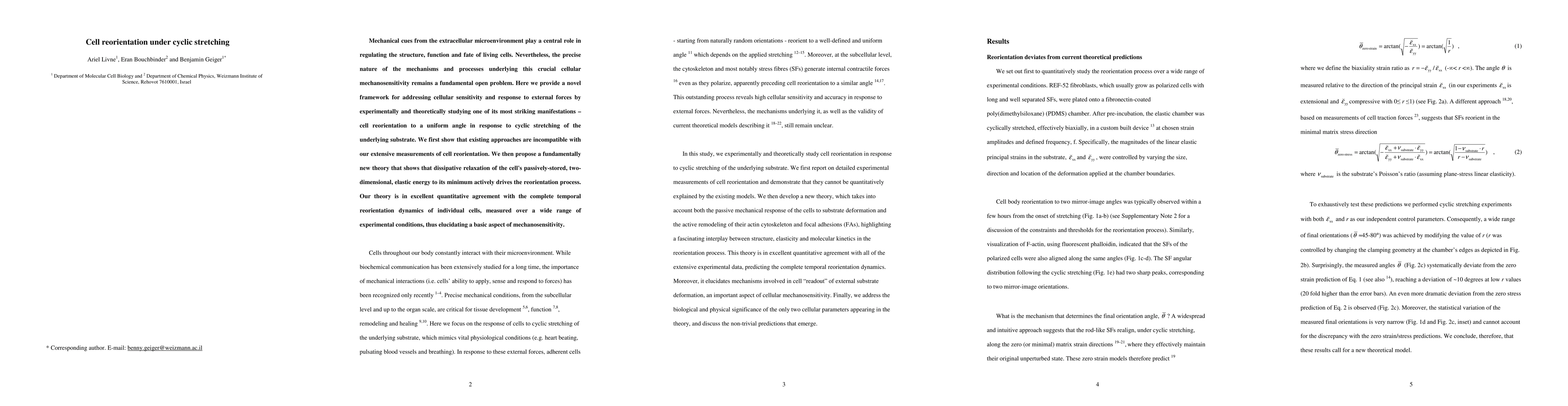 Mechanical cues from the extracellular microenvironment play a central role in regulating the structure, function and fate of living cells. Nevertheless, the precise nature of the mechanisms and processes underlying this crucial cellular mechanosensitivity remains a fundamental open problem. Here we provide a novel framework for addressing cellular sensitivity and response to external forces by experimentally and theoretically studying one of its most striking manifestations -- cell reorientation to a uniform angle in response to cyclic stretching of the underlying substrate. We first show that existing approaches are incompatible with our extensive measurements of cell reorientation. We then propose a fundamentally new theory that shows that dissipative relaxation of the cell's passively-stored, two-dimensional, elastic energy to its minimum actively drives the reorientation process. Our theory is in excellent quantitative agreement with the complete temporal reorientation dynamics of individual cells, measured over a wide range of experimental conditions, thus elucidating a basic aspect of mechanosensitivity.