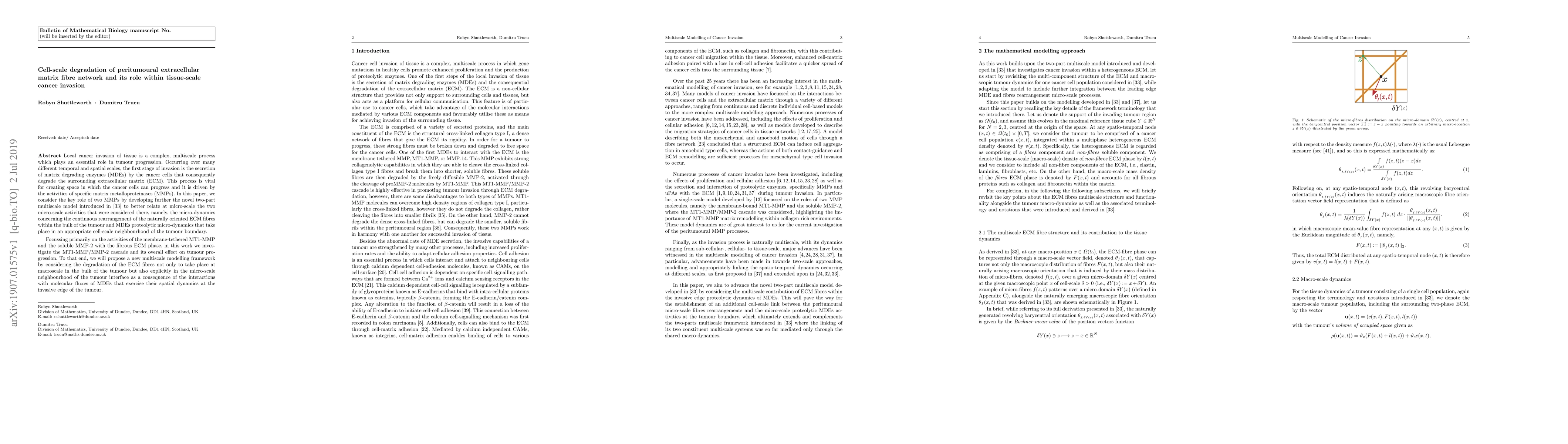 This paper develops a multiscale model to investigate how matrix metalloproteinases (MMPs), specifically MT1-MMP and MMP-2, degrade the extracellular matrix (ECM) at the cellular level, facilitating cancer invasion. It proposes a new framework to understand the ECM fibre degradation both in the tumour bulk and at the tumour interface, highlighting the MT1-MMP/MMP-2 cascade's role in tumour progression.