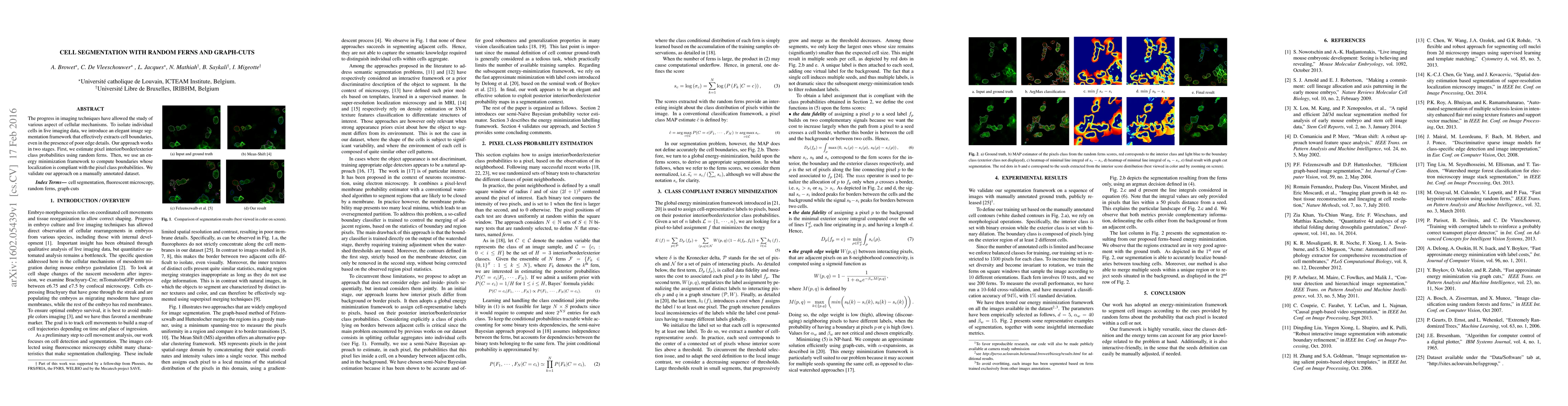 The progress in imaging techniques have allowed the study of various aspect of cellular mechanisms. To isolate individual cells in live imaging data, we introduce an elegant image segmentation framework that effectively extracts cell boundaries, even in the presence of poor edge details. Our approach works in two stages. First, we estimate pixel interior/border/exterior class probabilities using random ferns. Then, we use an energy minimization framework to compute boundaries whose localization is compliant with the pixel class probabilities. We validate our approach on a manually annotated dataset.