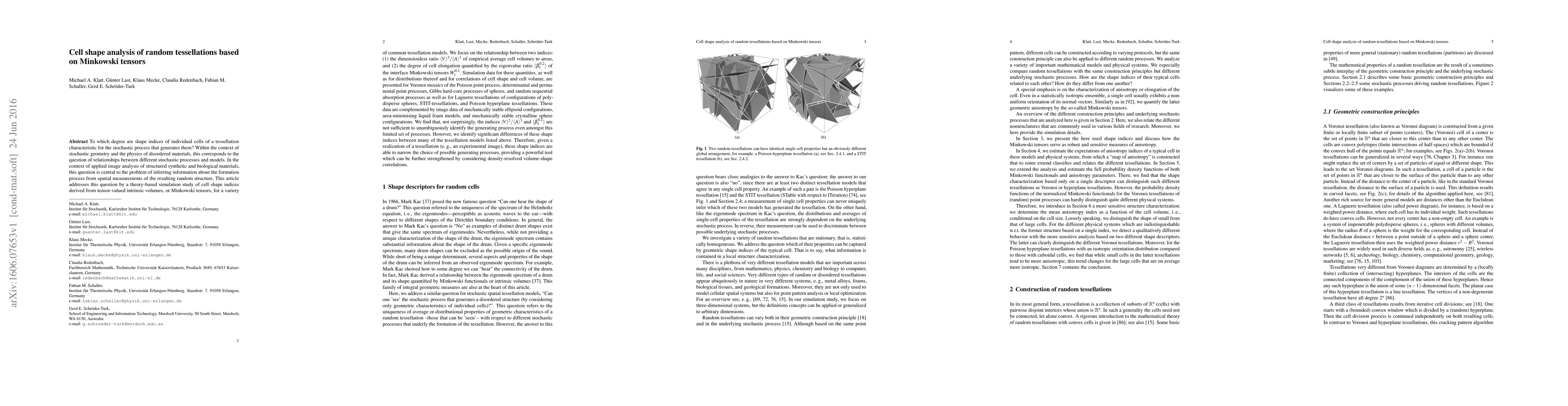 To which degree are shape indices of individual cells of a tessellation characteristic for the stochastic process that generates them? Within the context of stochastic geometry and the physics of disordered materials, this corresponds to the question of relationships between different stochastic models. In the context of image analysis of synthetic and biological materials, this question is central to the problem of inferring information about formation processes from spatial measurements of resulting random structures. We address this question by a theory-based simulation study of shape indices derived from Minkowski tensors for a variety of tessellation models. We focus on the relationship between two indices: an isoperimetric ratio of the empirical averages of cell volume and area and the cell elongation quantified by eigenvalue ratios of interfacial Minkowski tensors. Simulation data for these quantities, as well as for distributions thereof and for correlations of cell shape and volume, are presented for Voronoi mosaics of the Poisson point process, determinantal and permanental point processes, and Gibbs hard-core and random sequential absorption processes as well as for Laguerre tessellations of polydisperse spheres and STIT- and Poisson hyperplane tessellations. These data are complemented by mechanically stable crystalline sphere and disordered ellipsoid packings and area-minimising foam models. We find that shape indices of individual cells are not sufficient to unambiguously identify the generating process even amongst this limited set of processes. However, we identify significant differences of the shape indices between many of these tessellation models. Given a realization of a tessellation, these shape indices can narrow the choice of possible generating processes, providing a powerful tool which can be further strengthened by density-resolved volume-shape correlations.