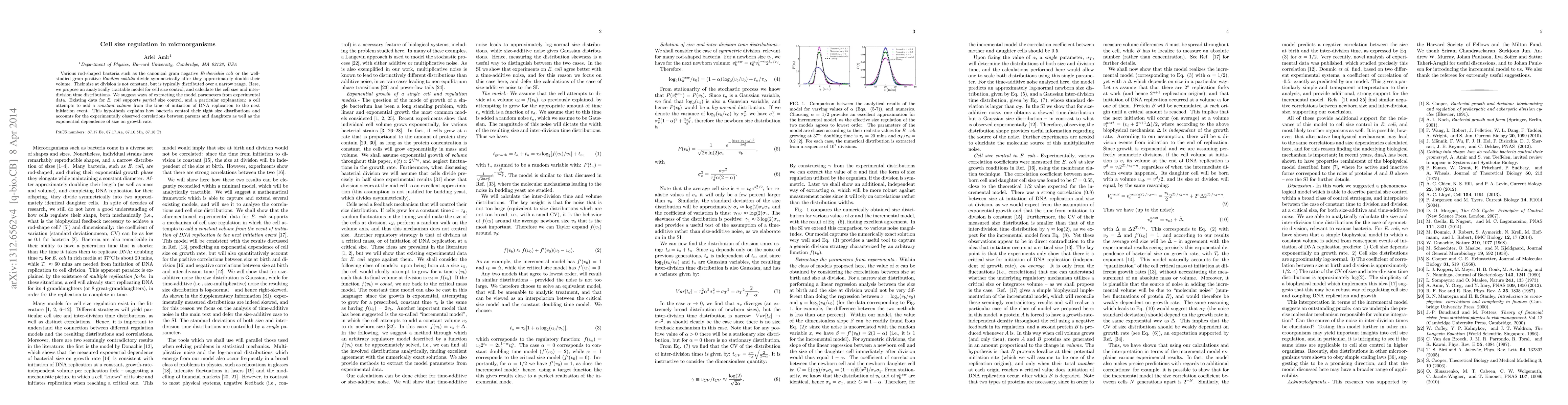 Researchers propose a model for cell size control in bacteria, suggesting that cells attempt to add a constant volume during growth, which explains observed correlations between parent and daughter cells.