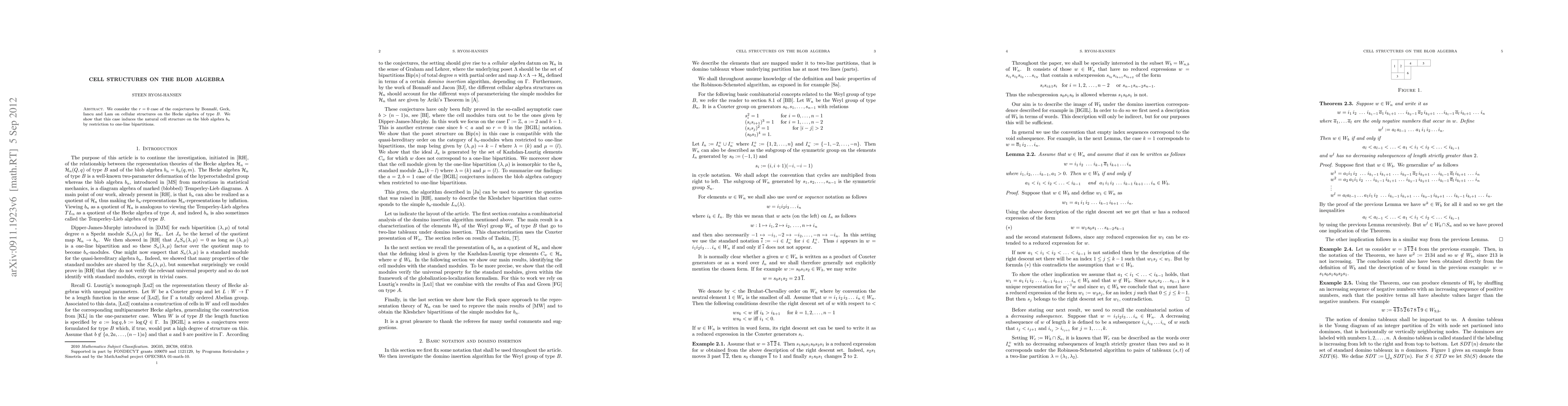 Researchers prove that a specific algebra has a natural cell structure when its one-line bipartitions are considered. This discovery relates to ongoing conjectures about cellular structures on the Hecke algebra of type B.