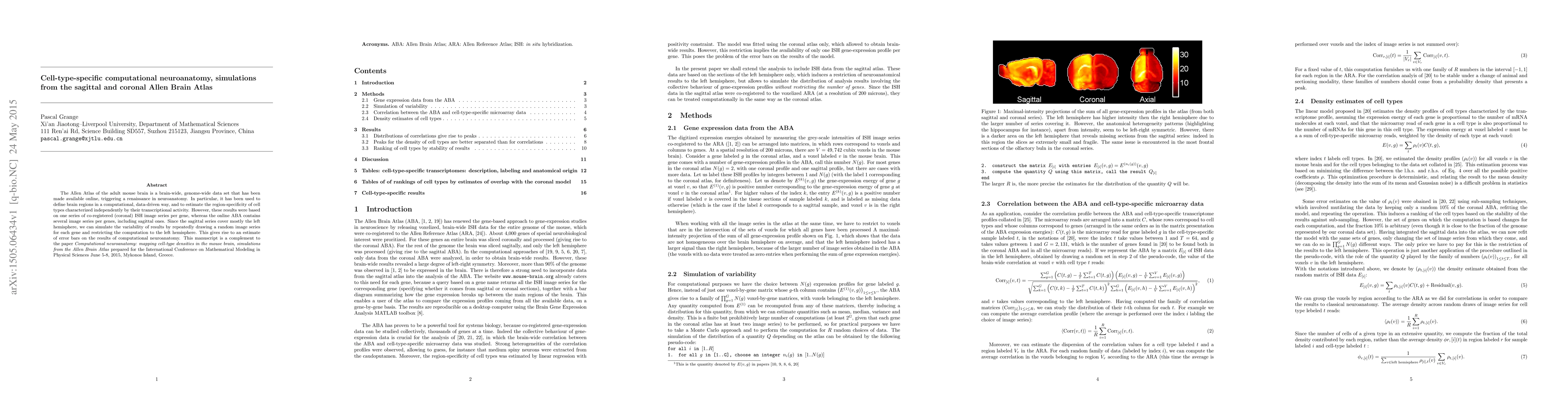 This paper explores the use of the Allen Brain Atlas to define brain regions and estimate cell type specificity based on transcriptional activity. It introduces a method to simulate variability by using different sagittal image series, focusing on the left hemisphere, to estimate error margins in computational neuroanatomy.