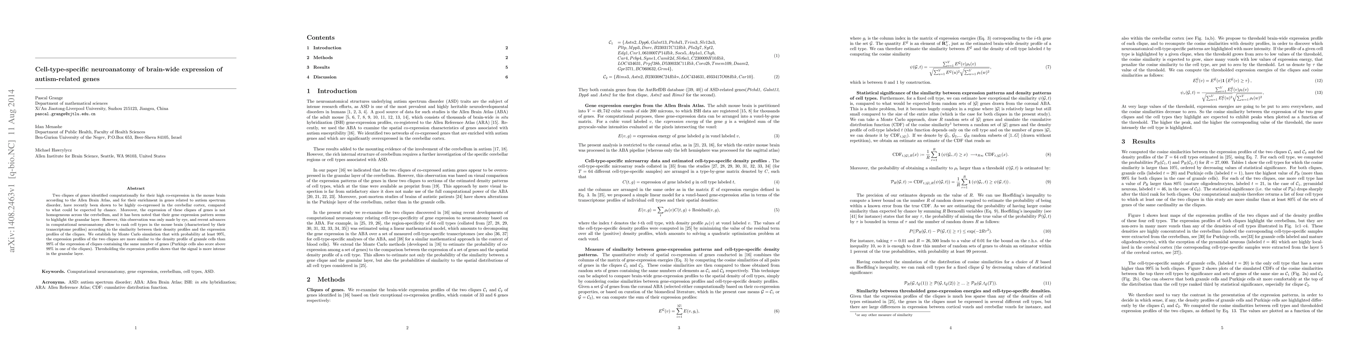 This study identifies two autism-related gene cliques with high cerebellar cortex co-expression, particularly in granule cells. Computational analysis confirms that these gene expression patterns are significantly more similar to granule cell density profiles than other cell types, highlighting the granular layer.