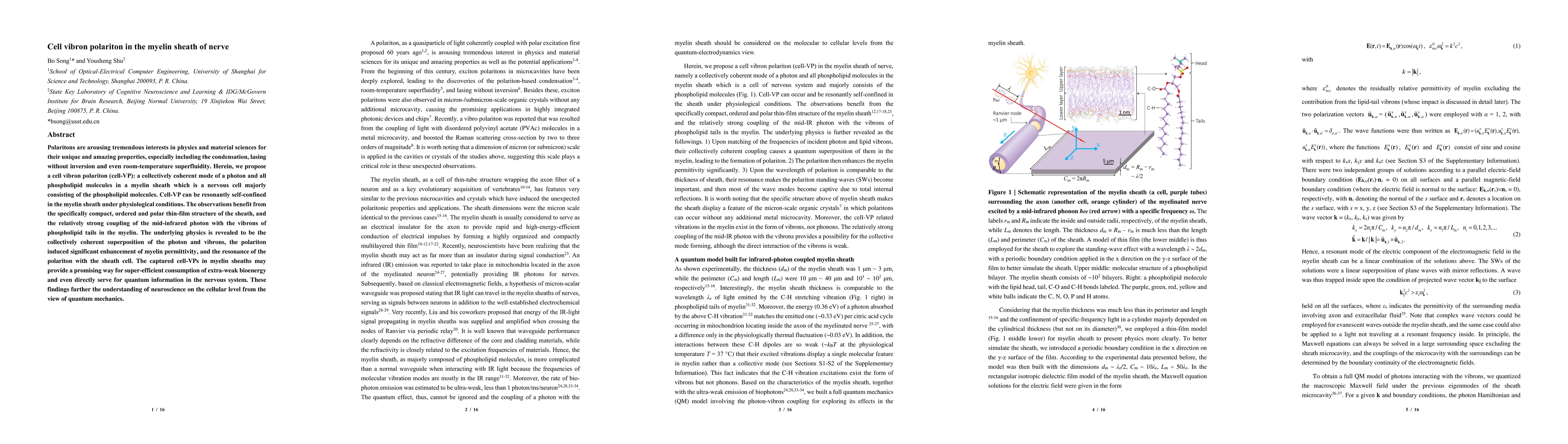 Researchers discovered a cell vibron polariton in nerve myelin sheaths, a collective mode of photon and phospholipid molecules with potential for efficient bioenergy consumption and quantum information processing.