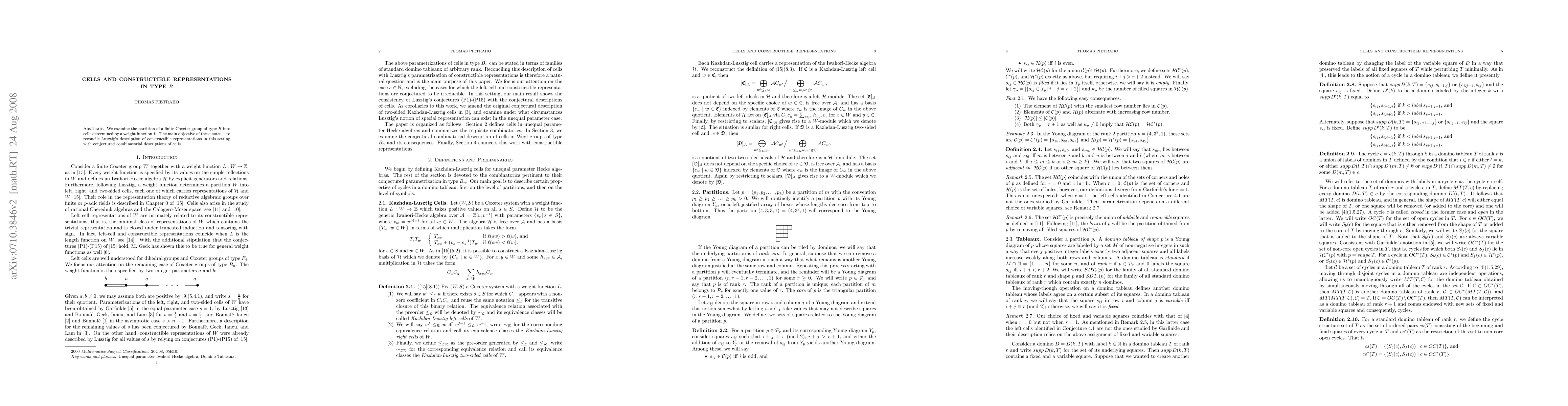We examine the partition of a finite Coxeter group of type $B$ into cells determined by a weight function $L$. The main objective of these notes is to reconcile Lusztig's description of constructible representations in this setting with conjectured combinatorial descriptions of cells.