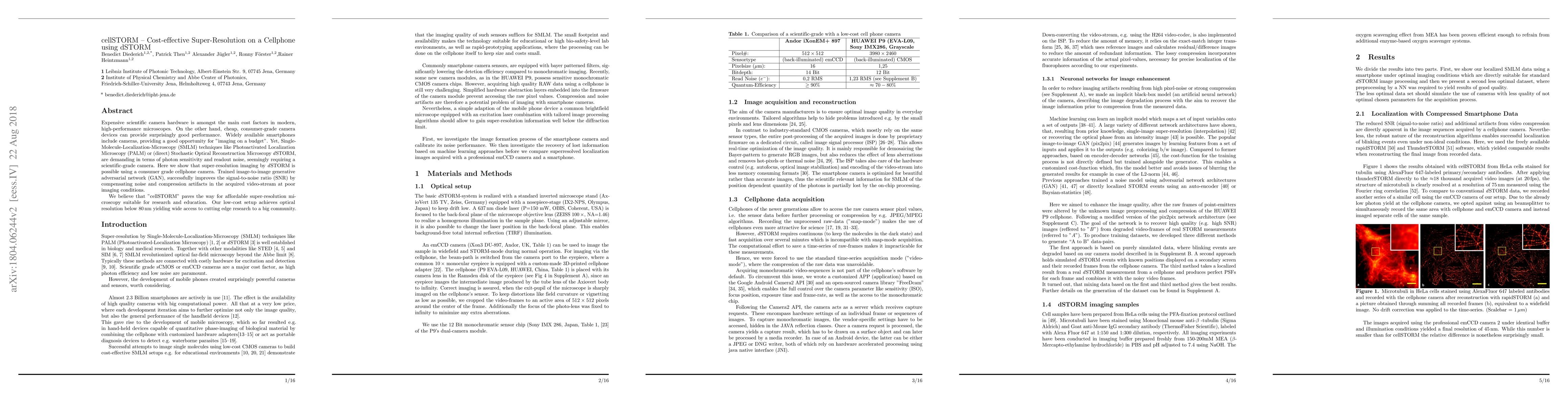 Expensive scientific camera hardware is amongst the main cost factors in modern, high-performance microscopes. Recent technological advantages have, however, yielded consumer-grade camera devices that can provide surprisingly good performance. The camera sensors of smartphones in particular have benefited of this development. Combined with computing power and due to their ubiquity, smartphones provide a fantastic opportunity for "imaging on a budget". Here we show that a consumer cellphone is capable even of optical super-resolution imaging by (direct) Stochastic Optical Reconstruction Microscopy (dSTORM), achieving optical resolution better than 80 nm. In addition to the use of standard reconstruction algorithms, we investigated an approach by a trained image-to-image generative adversarial network (GAN). This not only serves as a versatile technique to reconstruct video sequences under conditions where traditional algorithms provide sub-optimal localization performance, but also allows processing directly on the smartphone. We believe that "cellSTORM" paves the way for affordable super-resolution microscopy suitable for research and education, expanding access to cutting edge research to a large community.