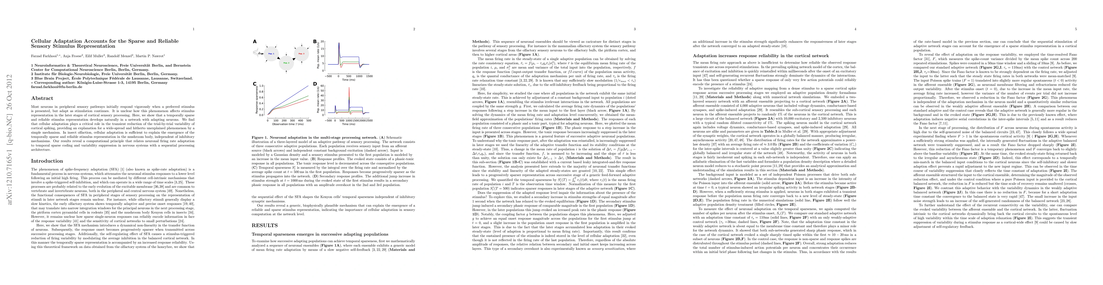 This paper demonstrates that cellular adaptation in neurons leads to a temporally sparse and reliable representation of sensory stimuli in later cortical processing stages, reducing trial-to-trial variability and explaining a widespread phenomenon through a simple mechanism. In insect olfaction, this adaptation alone can account for the observed sparse and reliable stimulus representation in the mushroom body.