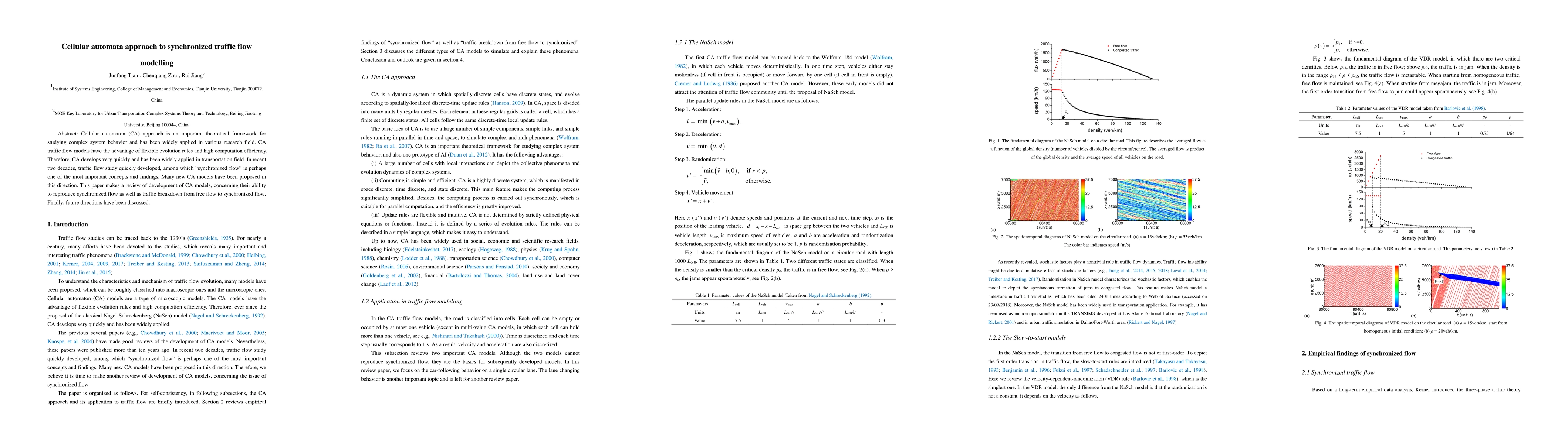 The paper reviews cellular automata (CA) models for synchronized traffic flow, classifying them into types based on their characteristics and examining their ability to reproduce synchronized flow and traffic breakdown.