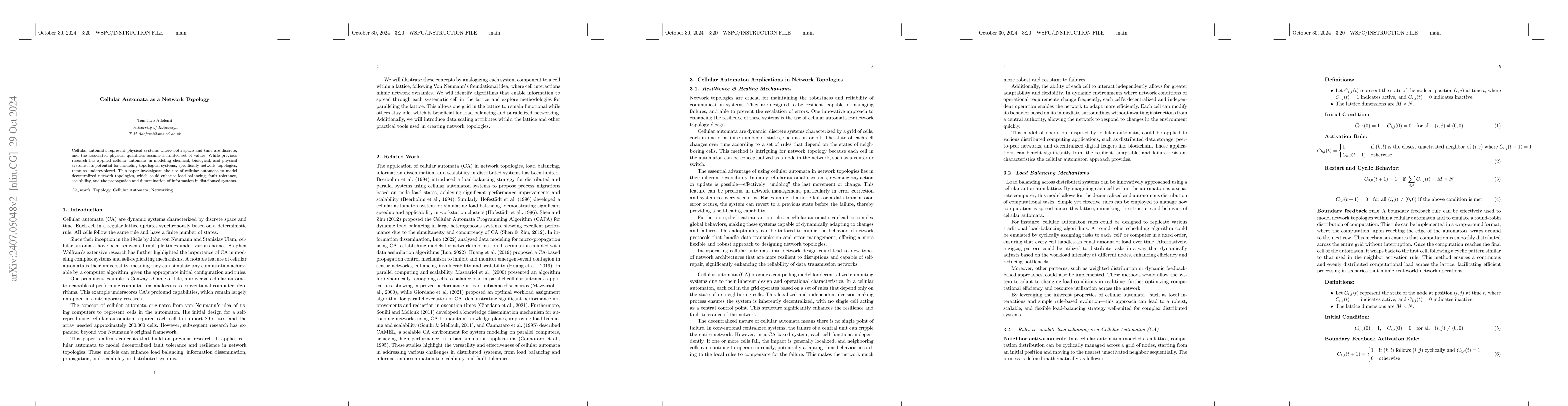 This paper explores the application of cellular automata to model decentralized network topologies, aiming to improve load balancing, fault tolerance, scalability, and information dissemination in distributed systems. The study investigates how cellular automata can provide an innovative approach to understanding network topology dynamics.