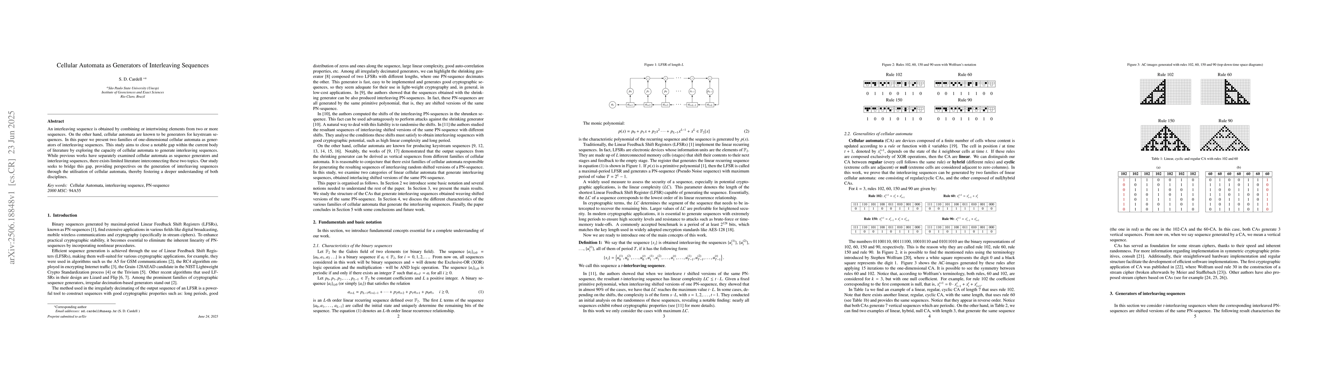 An interleaving sequence is obtained by combining or intertwining elements from two or more sequences. On the other hand, cellular automata are known to be generators for keystream sequences. In this paper we present two families of one-dimensional cellular automata as generators of interleaving sequences. This study aims to close a notable gap within the current body of literature by exploring the capacity of cellular automata to generate interleaving sequences. While previous works have separately examined cellular automata as sequence generators and interleaving sequences, there exists limited literature interconnecting these two topics. Our study seeks to bridge this gap, providing perspectives on the generation of interleaving sequences through the utilisation of cellular automata, thereby fostering a deeper understanding of both disciplines.