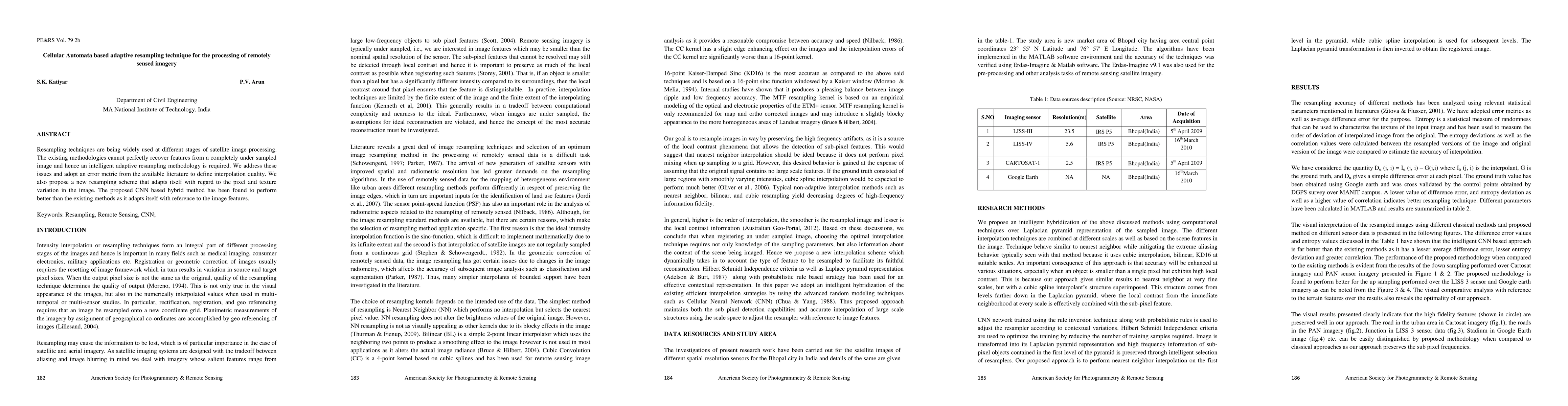 Resampling techniques are being widely used at different stages of satellite image processing. The existing methodologies cannot perfectly recover features from a completely under sampled image and hence an intelligent adaptive resampling methodology is required. We address these issues and adopt an error metric from the available literature to define interpolation quality. We also propose a new resampling scheme that adapts itself with regard to the pixel and texture variation in the image. The proposed CNN based hybrid method has been found to perform better than the existing methods as it adapts itself with reference to the image features.