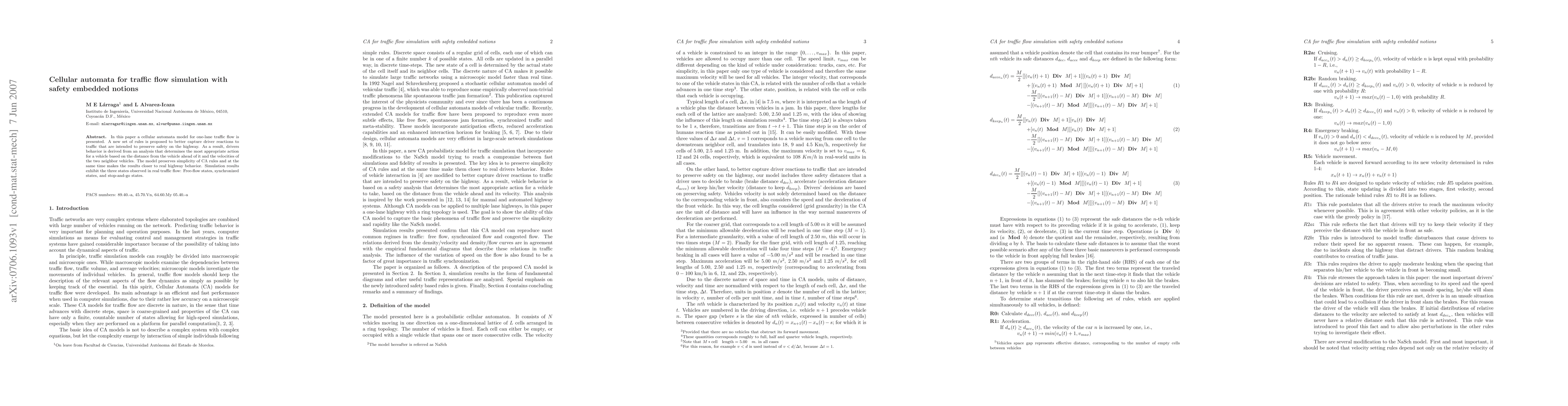 This paper introduces a cellular automata model for simulating one-lane traffic flow, proposing new rules to enhance safety by analyzing driver reactions based on distances and velocities. The model maintains simplicity while accurately reflecting real highway traffic states, including free-flow, synchronized, and stop-and-go patterns.