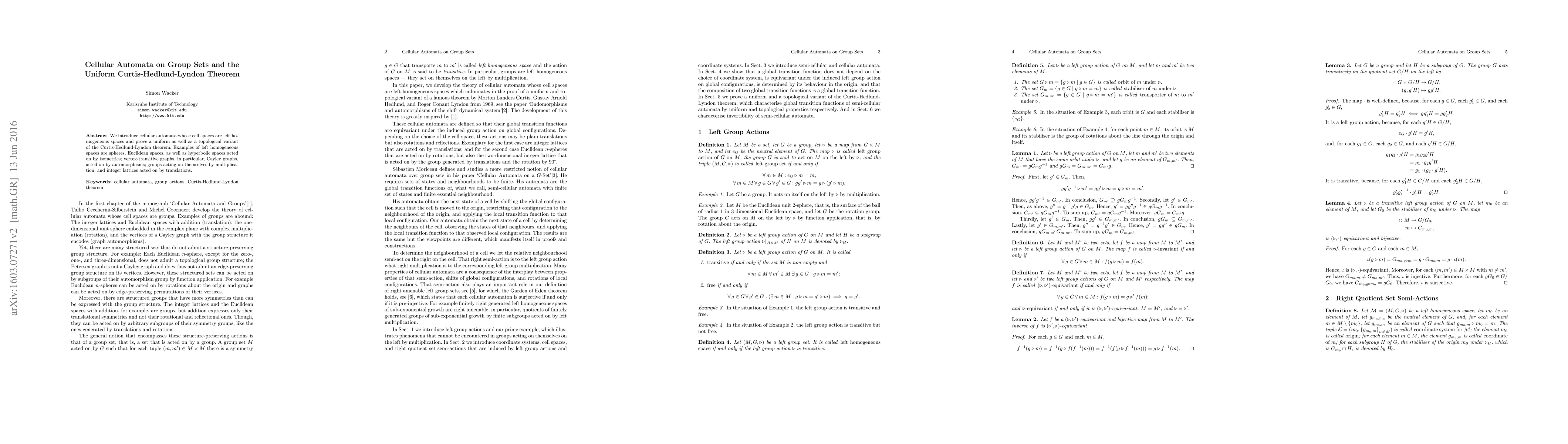 This paper introduces cellular automata defined on left homogeneous spaces and proves a uniform and topological variant of the Curtis-Hedlund-Lyndon theorem for these systems. Examples include spheres, Euclidean spaces, hyperbolic spaces, vertex-transitive graphs, and integer lattices.