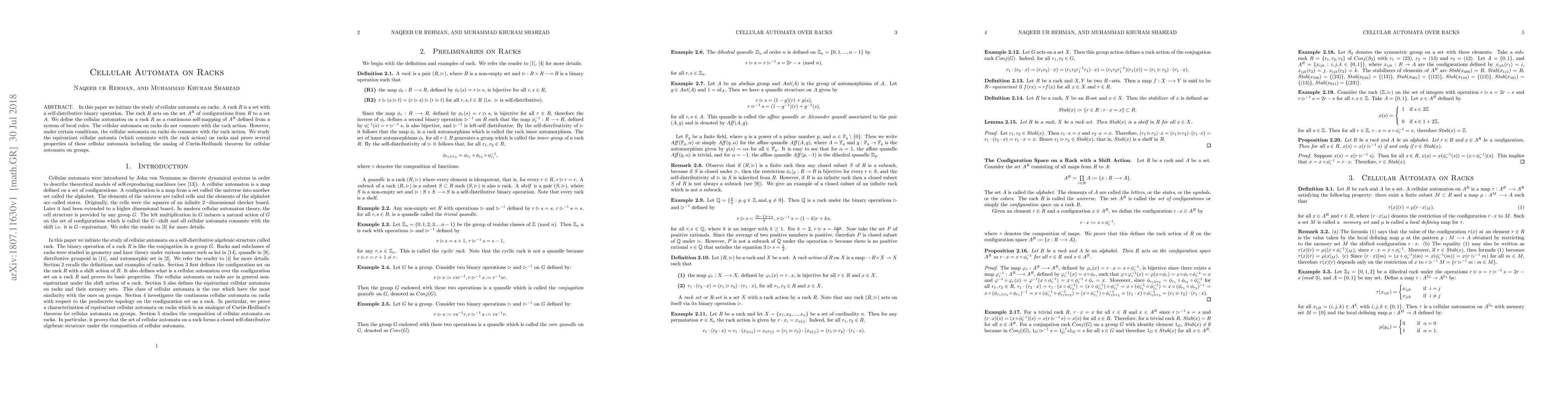 The paper defines and analyzes cellular automata on racks, proving properties and providing an analog of Curtis-Hedlund's theorem for this new context.