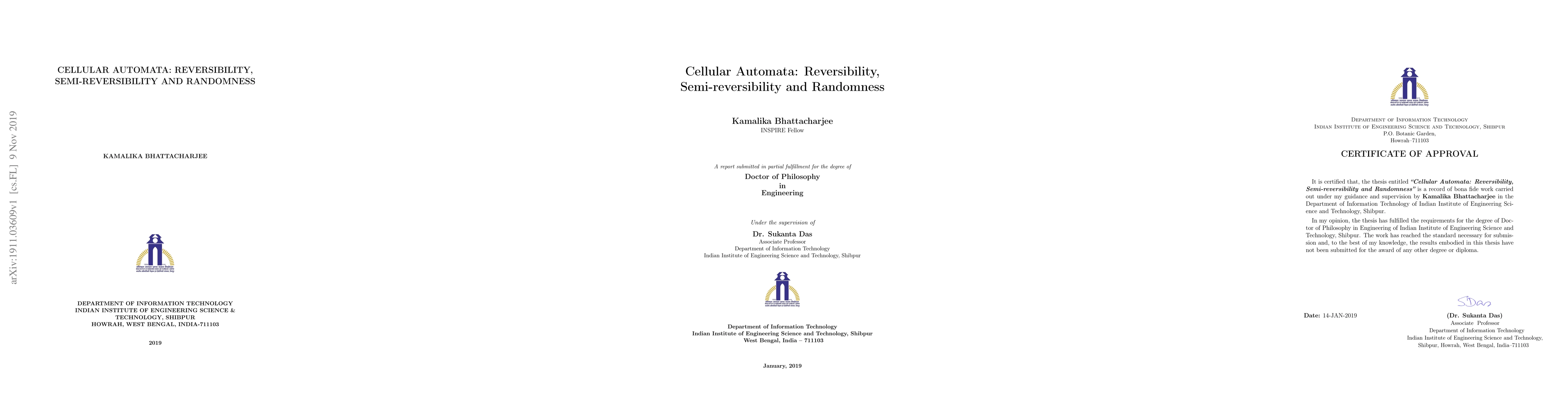 In this dissertation, we study two of the global properties of 1-dimensional cellular automata (CAs) under periodic boundary condition, namely, reversibility and randomness. To address reversibility of finite CAs, we develop a mathematical tool, named reachability tree, which can efficiently characterize those CAs. A decision algorithm is proposed using minimized reachability tree which takes a CA rule and size n as input and verifies whether the CA is reversible for that n. To decide reversibility of a finite CA, we need to know both the rule and the CA size. However, for infinite CAs, reversibility is decided based on the local rule only. Therefore, apparently, these two cases seem to be divergent. This dissertation targets to construct a bridge between these two cases. To do so, reversibility of CAs is redefined and the notion of semi-reversible CAs is introduced. Hence, we propose a new classification of finite CAs -(1) reversible CAs, (2) semi-reversible CAs and (3) strictly irreversible CAs. Finally, relation between reversibility of finite and infinite CAs is established. This dissertation also explores CAs as source of randomness and build pseudo-random number generators (PRNGs) based on CAs. We identify a list of properties for a CA to be a good source of randomness. Two heuristic algorithms are proposed to synthesize candidate (decimal) CAs which have great potentiality as PRNGs. Two schemes tare developed o use these CAs as window-based PRNGs - (1) as decimal number generators and as (2) binary number generators. We empirically observe that in comparison to the best PRNG SFMT19937-64, average performance of our proposed PRNGs are slightly better. Hence, our decimal CAs based PRNGs are one of the best PRNGs today.