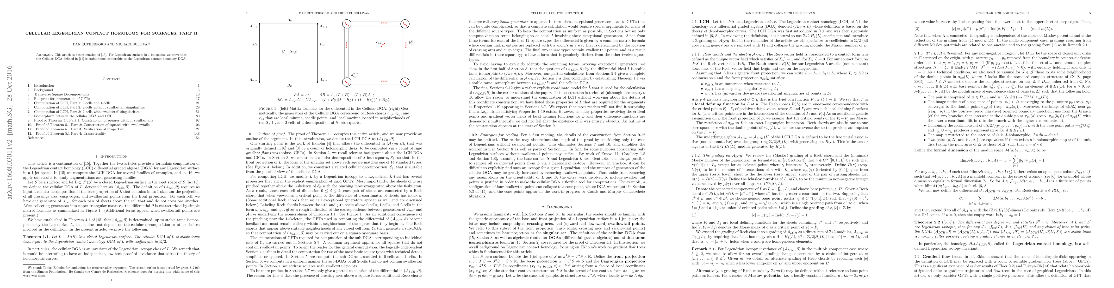 This paper extends previous work by proving that the Cellular DGA for Legendrian surfaces in 1-jet spaces is stably tame isomorphic to the Legendrian contact homology DGA, reinforcing the equivalence between these two structures.