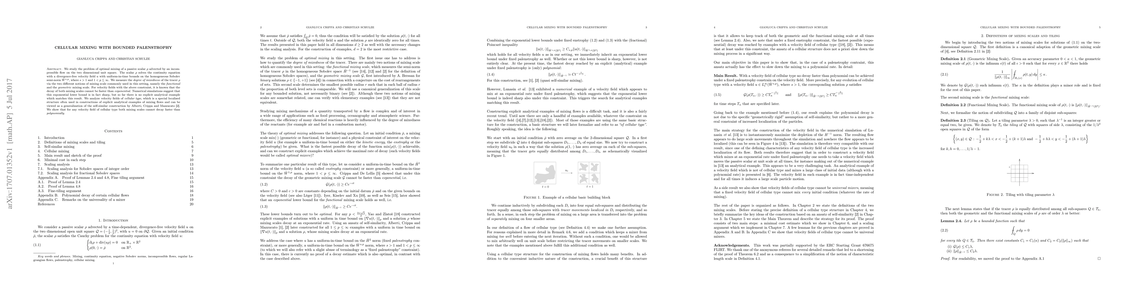We study the problem of optimal mixing of a passive scalar $\rho$ advected by an incompressible flow on the two dimensional unit square. The scalar $\rho$ solves the continuity equation with a divergence-free velocity field $u$ with uniform-in-time bounds on the homogeneous Sobolev semi-norm $\dot{W}^{s,p}$, where $s>1$ and $1< p \leq \infty$. We measure the degree of mixedness of the tracer $\rho$ via the two different notions of mixing scale commonly used in this setting, namely the functional and the geometric mixing scale. For velocity fields with the above constraint, it is known that the decay of both mixing scales cannot be faster than exponential. Numerical simulations suggest that this exponential lower bound is in fact sharp, but so far there is no explicit analytical example which matches this result. We analyze velocity fields of cellular type, which is a special localized structure often used in constructions of explicit analytical examples of mixing flows and can be viewed as a generalization of the self-similar construction by Alberti, Crippa and Mazzucato. We show that for any velocity field of cellular type both mixing scales cannot decay faster than polynomially.