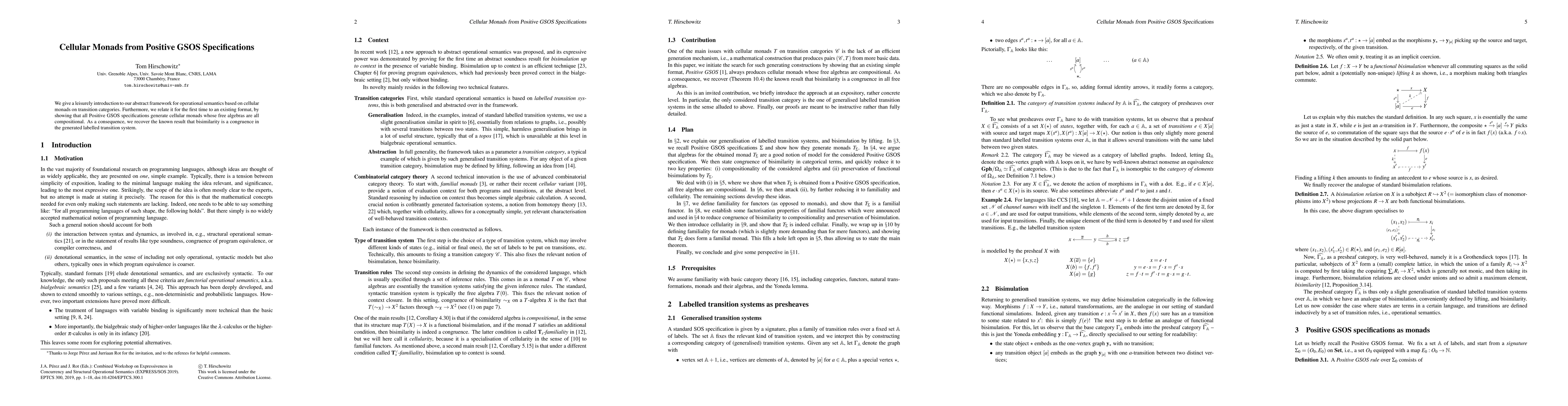 We give a leisurely introduction to our abstract framework for operational semantics based on cellular monads on transition categories. Furthermore, we relate it for the first time to an existing format, by showing that all Positive GSOS specifications generate cellular monads whose free algebras are all compositional. As a consequence, we recover the known result that bisimilarity is a congruence in the generated labelled transition system.