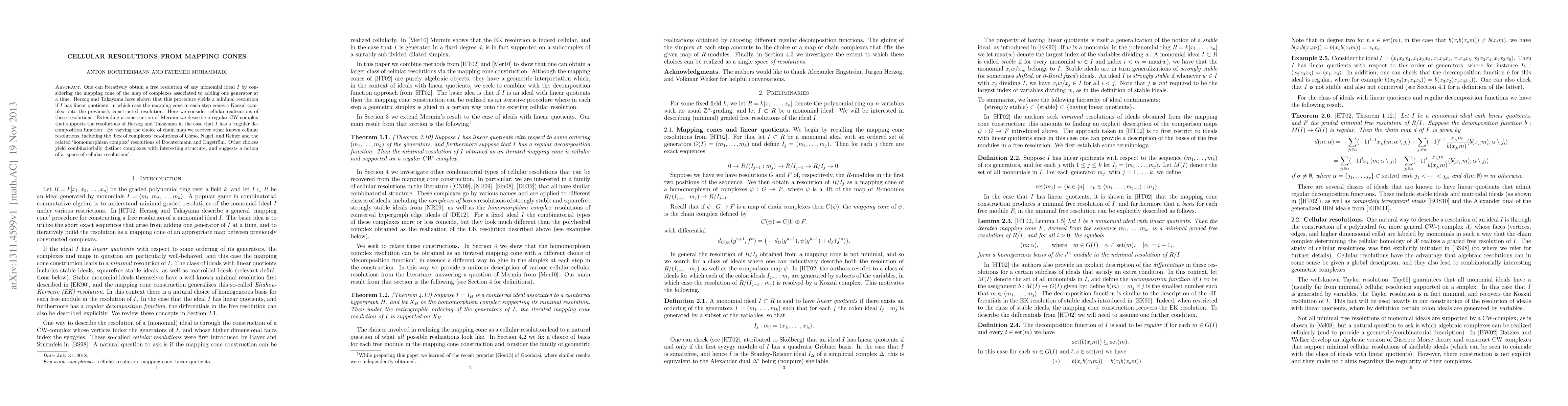 One can iteratively obtain a free resolution of any monomial ideal $I$ by considering the mapping cone of the map of complexes associated to adding one generator at a time. Herzog and Takayama have shown that this procedure yields a minimal resolution if $I$ has linear quotients, in which case the mapping cone in each step cones a Koszul complex onto the previously constructed resolution. Here we consider cellular realizations of these resolutions. Extending a construction of Mermin we describe a regular CW-complex that supports the resolutions of Herzog and Takayama in the case that $I$ has a `regular decomposition function'. By varying the choice of chain map we recover other known cellular resolutions, including the `box of complexes' resolutions of Corso, Nagel, and Reiner and the related `homomorphism complex' resolutions of Dochtermann and Engstr\"om. Other choices yield combinatorially distinct complexes with interesting structure, and suggests a notion of a `space of cellular resolutions'.