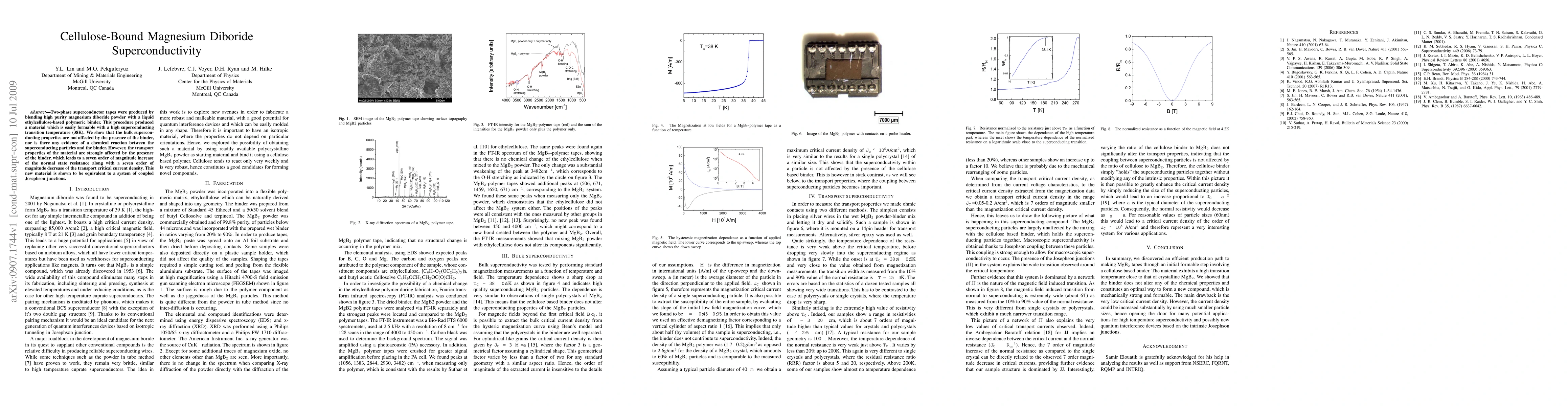 This paper describes the production of cellulose-bound magnesium diboride superconductor tapes, which maintain high superconducting transition temperatures (38K) despite the binder. While the binder does not chemically alter the superconductor, it significantly alters transport properties, increasing normal state resistance and decreasing transport critical current density, resulting in a material behaving like coupled Josephson junctions.