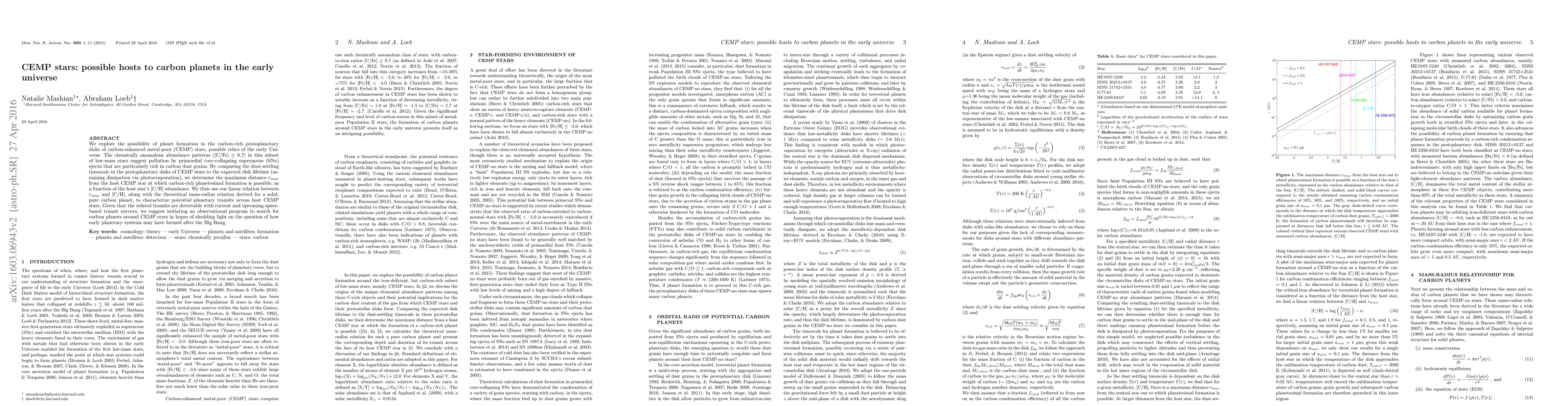 This paper investigates the potential for carbon-rich planet formation around carbon-enhanced metal-poor (CEMP) stars, which may host carbon planets in the early universe. It determines the maximum distance for carbon-rich planetesimal formation based on carbon dust grains and suggests initiating an observational program to search for such planets using current and future space-based transit surveys.