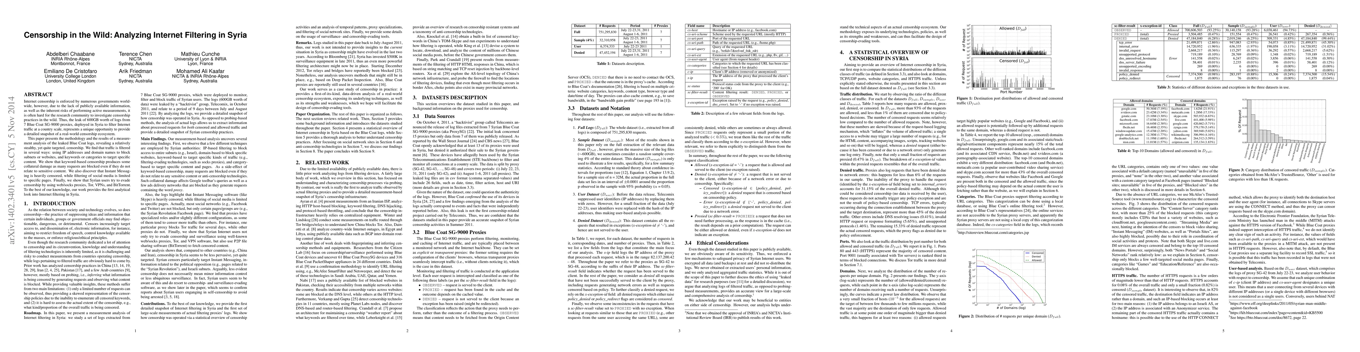 This paper analyzes a leaked dataset from Blue Coat proxies in Syria, revealing detailed insights into the country's Internet censorship practices, including targeted blocking of IPs, domains, keywords, and categories. The study highlights collateral damage from keyword-based censorship and notes the use of evasion tools by Syrian users.